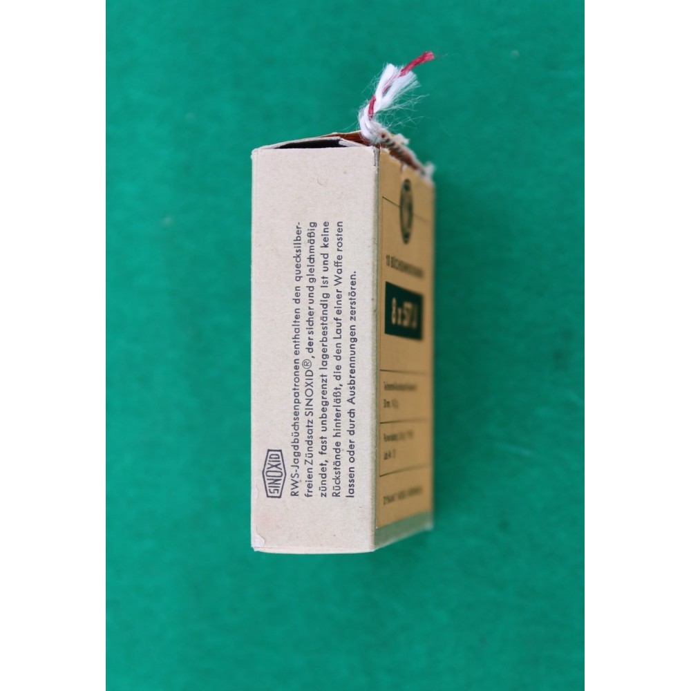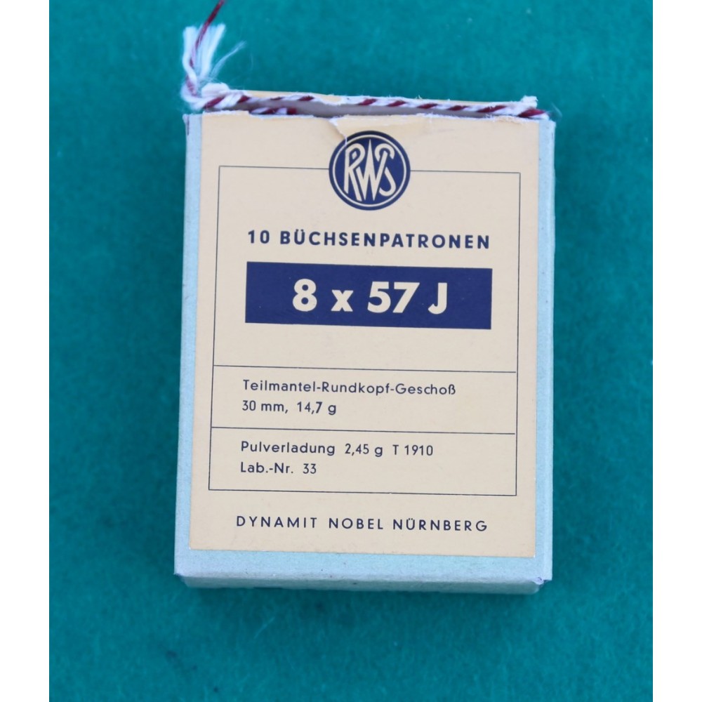 Náboje sbírkové 8x57J od renomované firmy RWS, osazené poloplášťovou střelou 14,7 g.