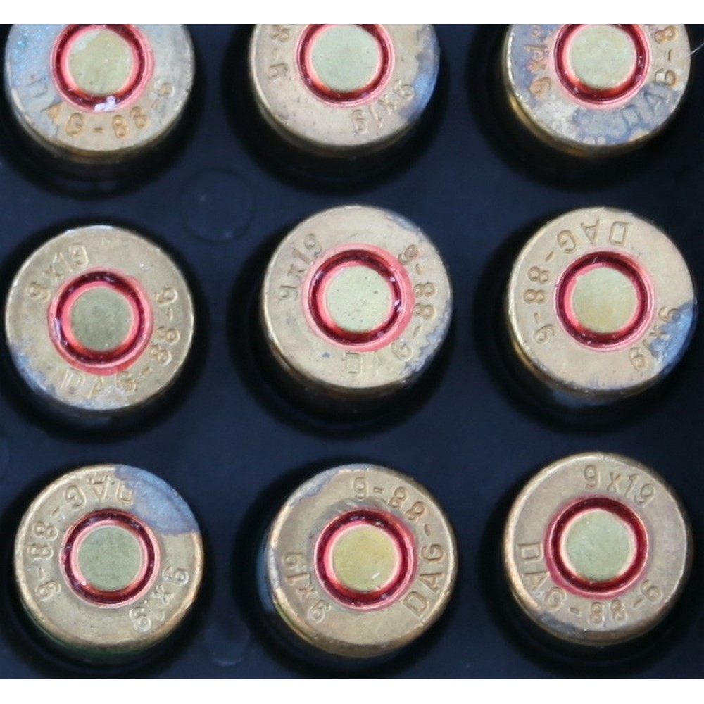 Sbírkové, slepé náboje ráže 9mm Luger. Detaily provedení a dnového značení viz foto.