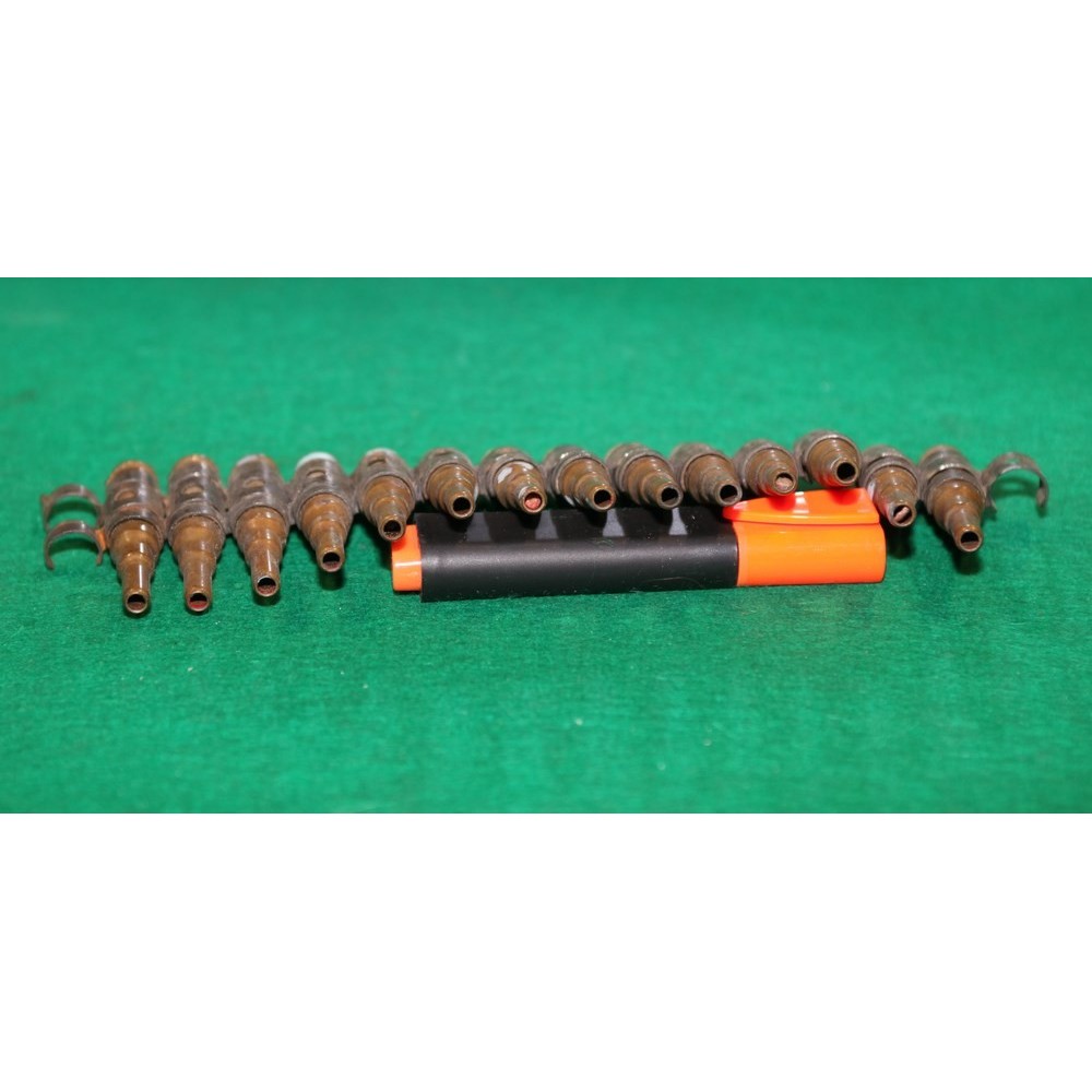 Sběratelský konvolut - 14 ks slepých nábojů .308W (7,62x51) v rozpadavém pásu. Prodej jako celek pro sběratele.