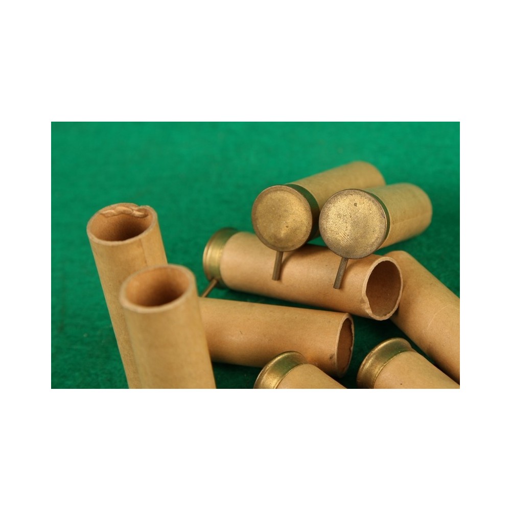Brokové dutinky systém Lefaucheux ve vynikajícím stavu, dnové značení NENÍ. Dutinky mají nízké kování a kvalitní papírové stěny oranžové barvy.