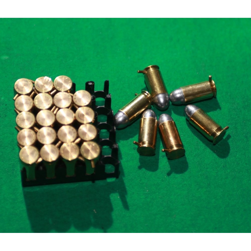 Náboje pro historické zbraně, sbírkové. Náboje jsou laborovány černým prachem (1,1g)a olověnou střelou (15,1g). Náboje lze opětovně přebíjet.