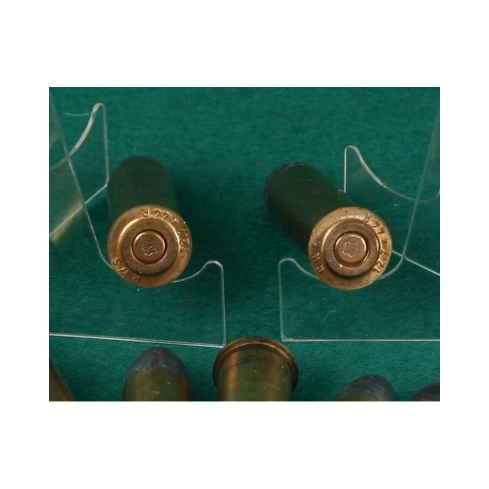 Sbírkové, perfektně zachovalé, historické náboje. Byly plněné ještě černým prachem, laborovány olověnou střelou. Náboje se používaly hlavně v licenčních puškách Remington Rolling Block.