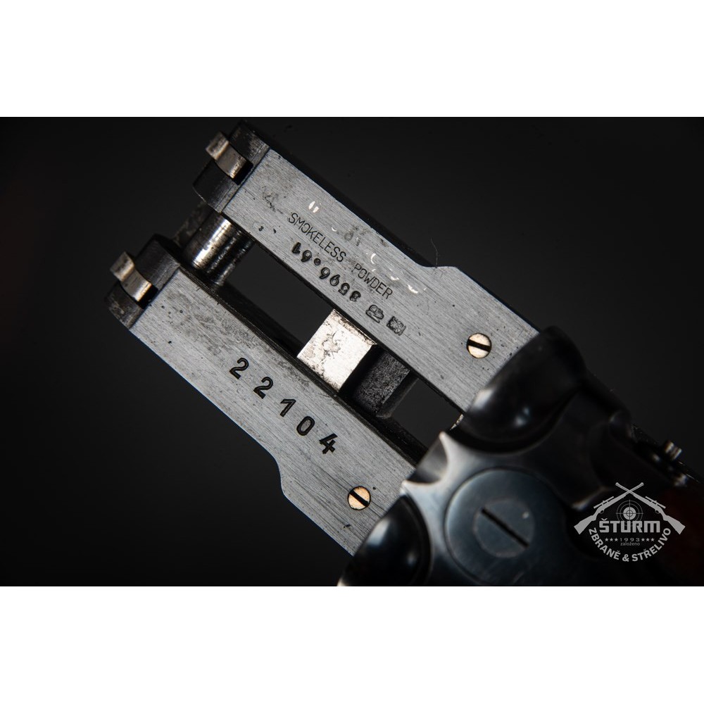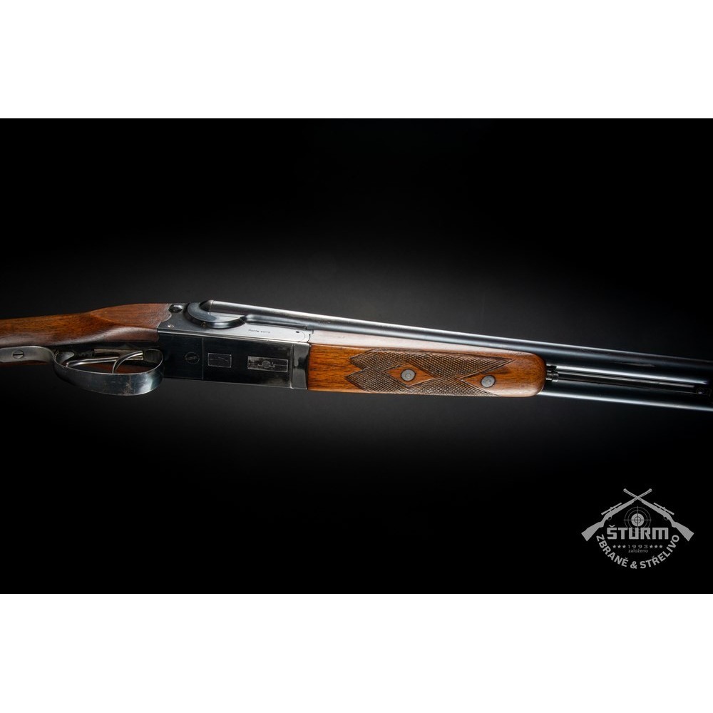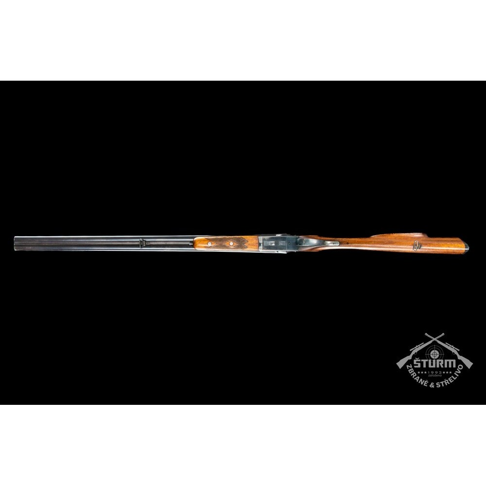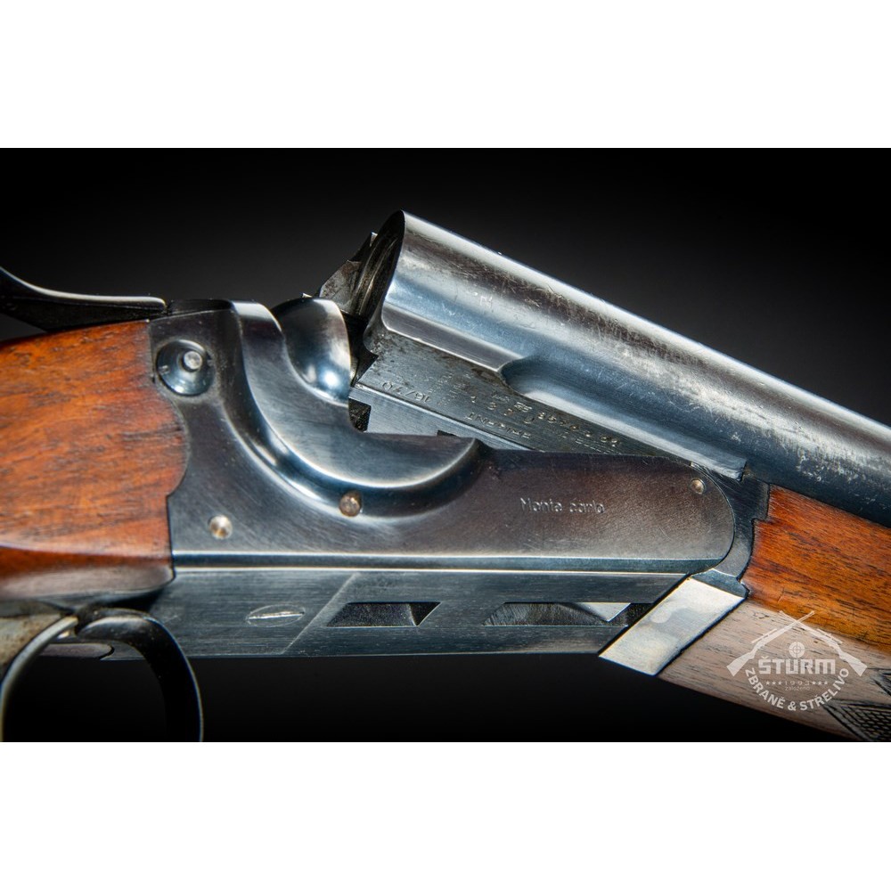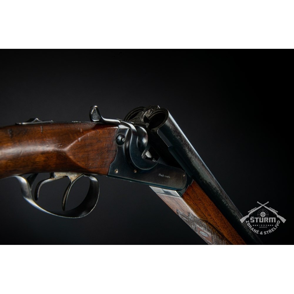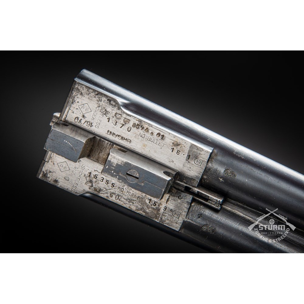 Broková dvojka v ráži 16/70, technicky naprosto v pořádku, vývrt obou hlavní jako zrcadlo. Dřevěné díly (pažba a předpažbí) ve výborné kondici, prakticky bez škrábnutí, brynýr na hlavních a baskuli v exponovaných místech setřený. Baskule však bez jakékoliv vůle, plně funkční. Puška je vybavena vyhazovači.