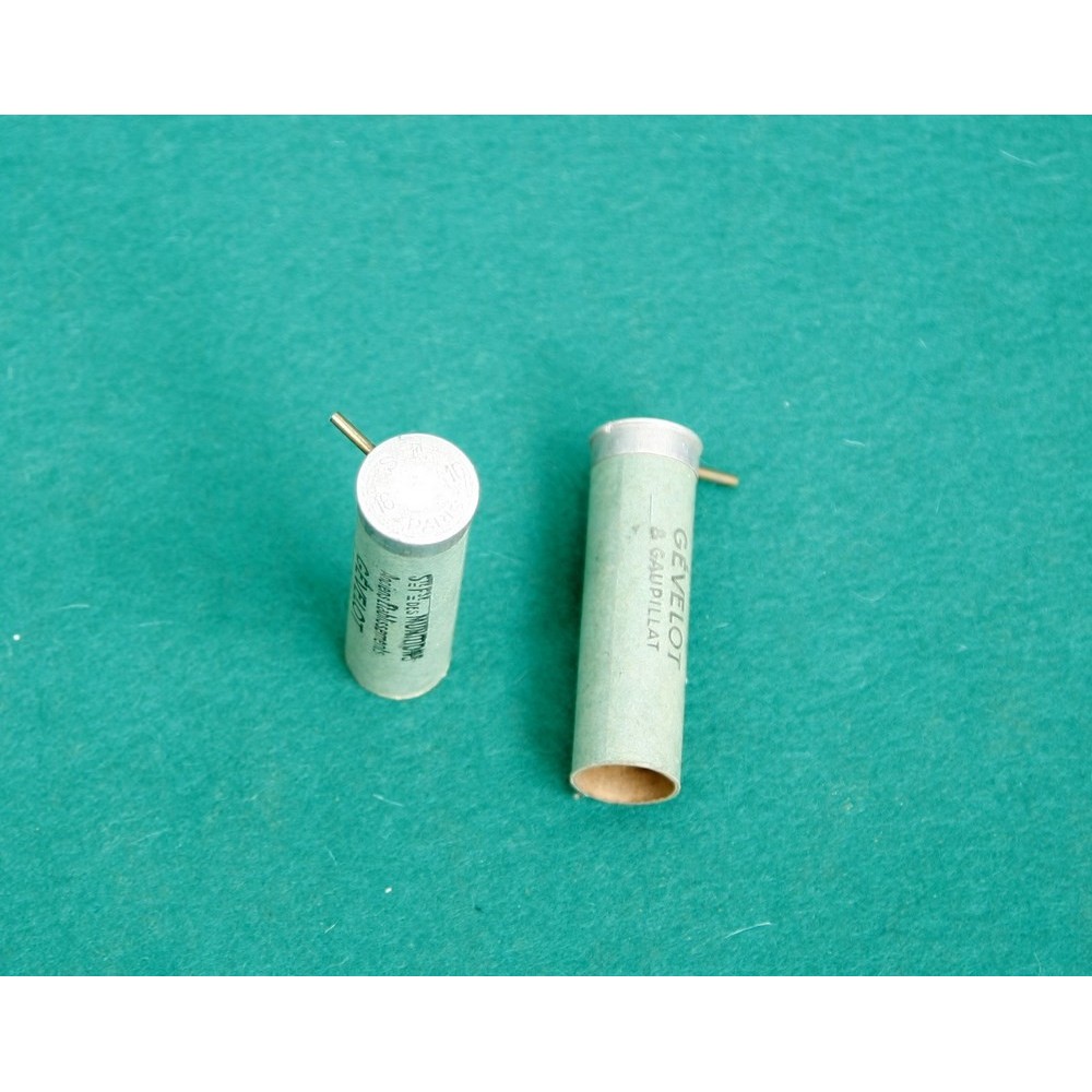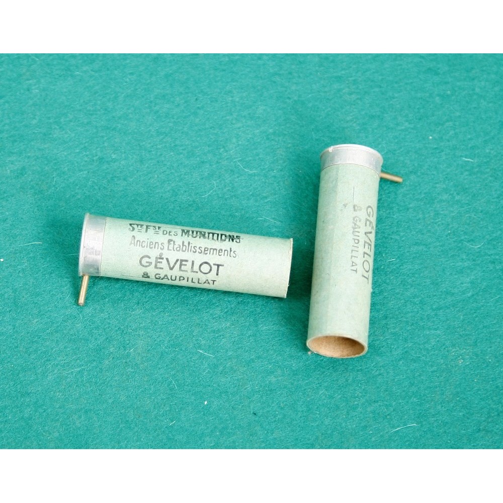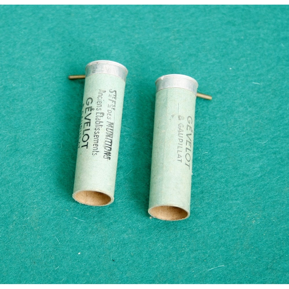 Hezké, zachovalé dutinky systém Lefaucheux, vyrobené firmou Gévelot v Paříži. Vzhledem ke stáří nelze garantovat fukčnost, zápalky lze však případně vyměnit.