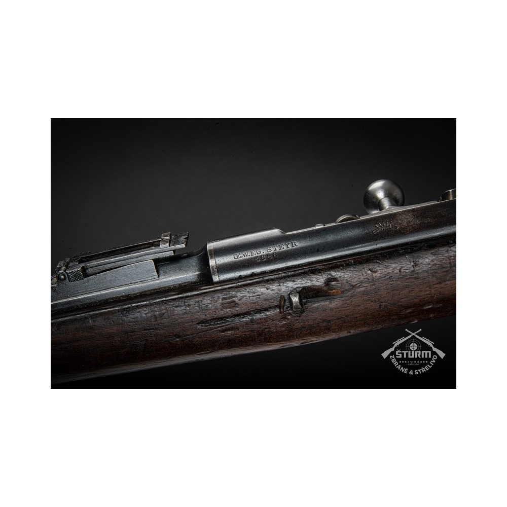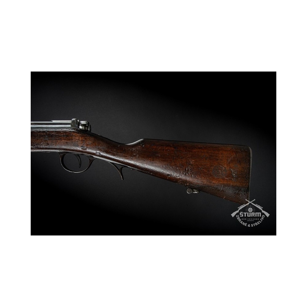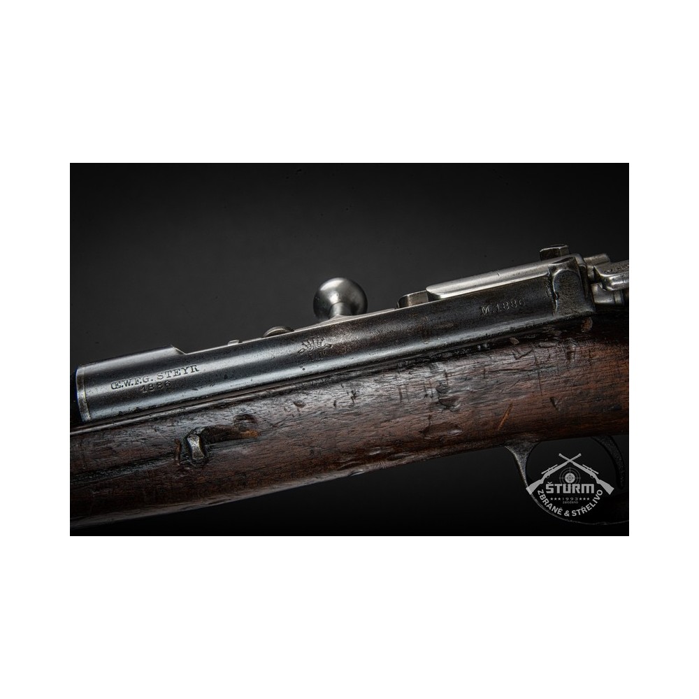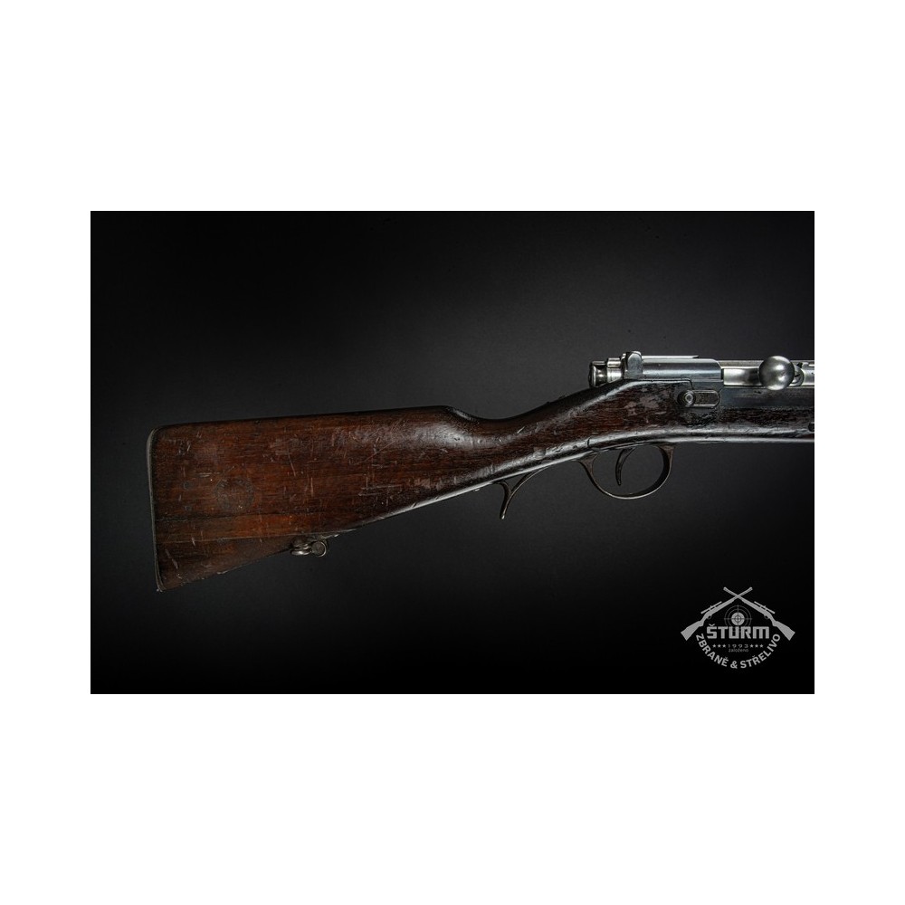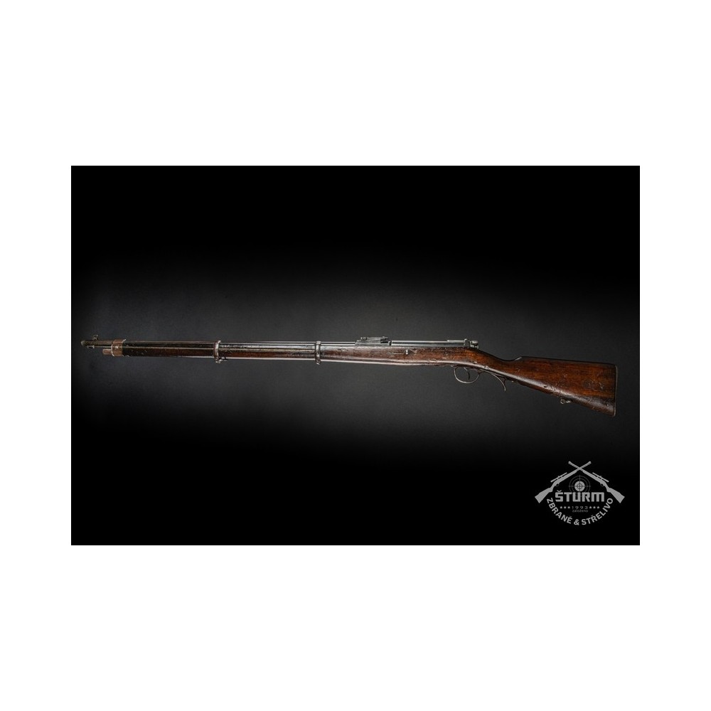 Puška Kropatschek, vyrobená v roce 1886 ve zbrojovce Steyr v Rakousku-Uhersku. Pažba nese stopy používání a botka byla dobově opravena. Kovové části jsou pod původním brynýrem, historická patina. Předností je zejména velmi hezký vývrt v hlavni s ostrými drážkami a leskem.