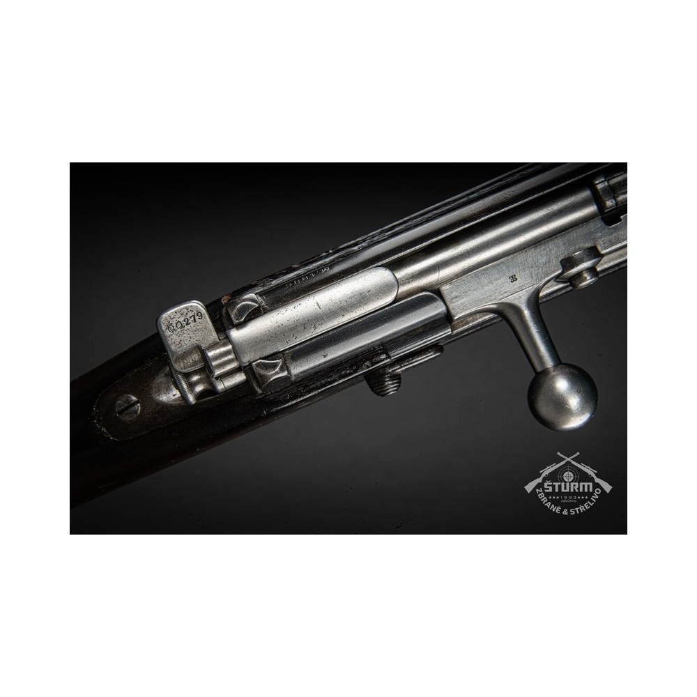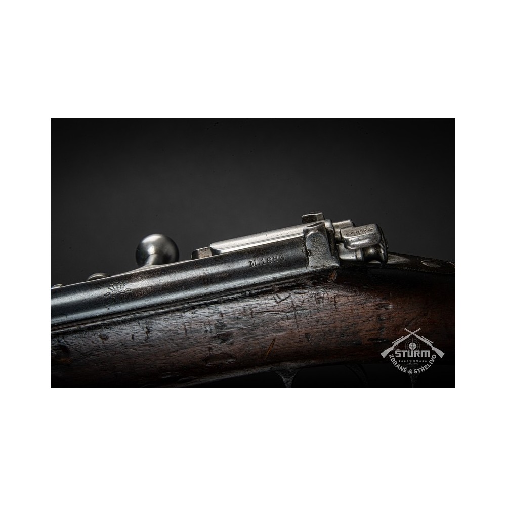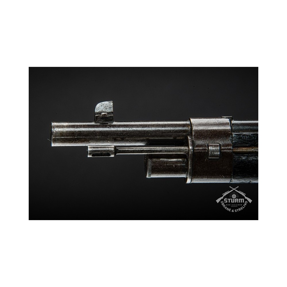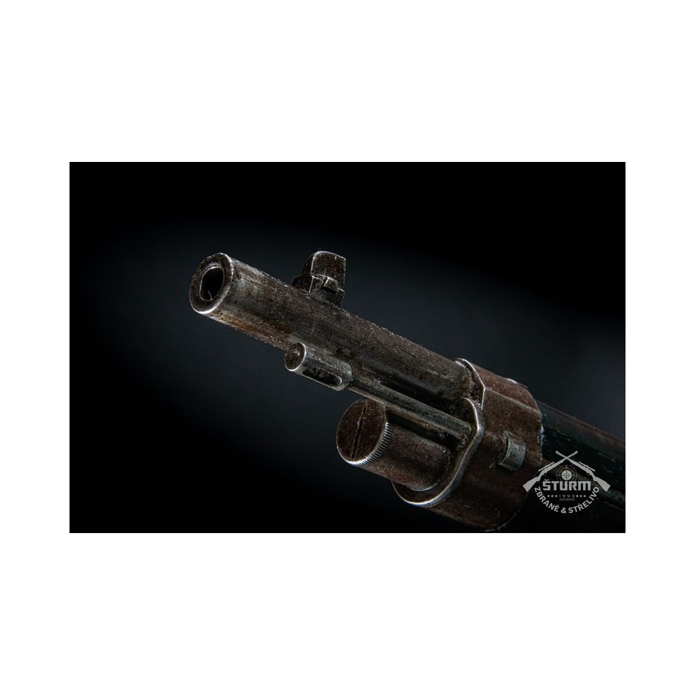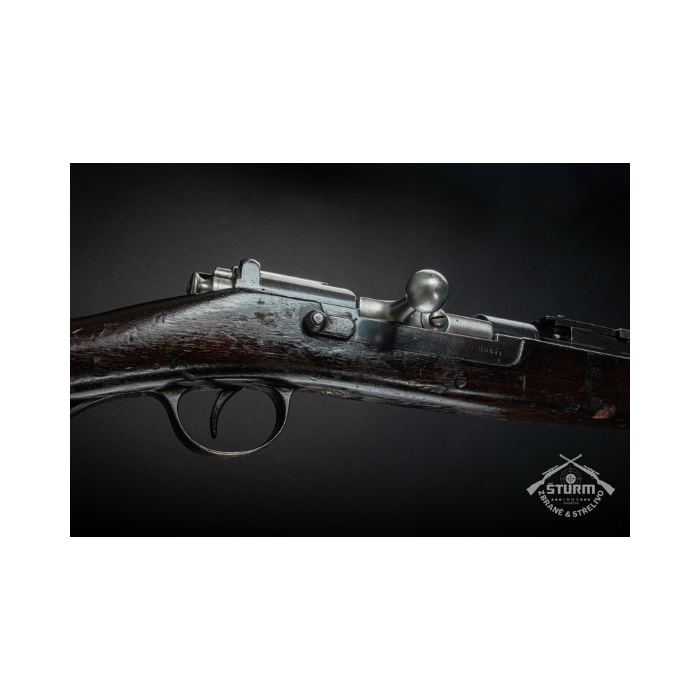 Puška Kropatschek, vyrobená v roce 1886 ve zbrojovce Steyr v Rakousku-Uhersku. Pažba nese stopy používání a botka byla dobově opravena. Kovové části jsou pod původním brynýrem, historická patina. Předností je zejména velmi hezký vývrt v hlavni s ostrými drážkami a leskem.
