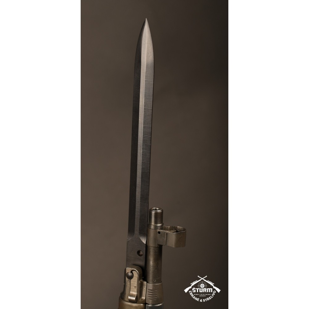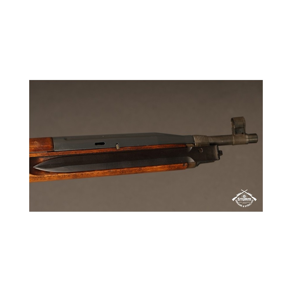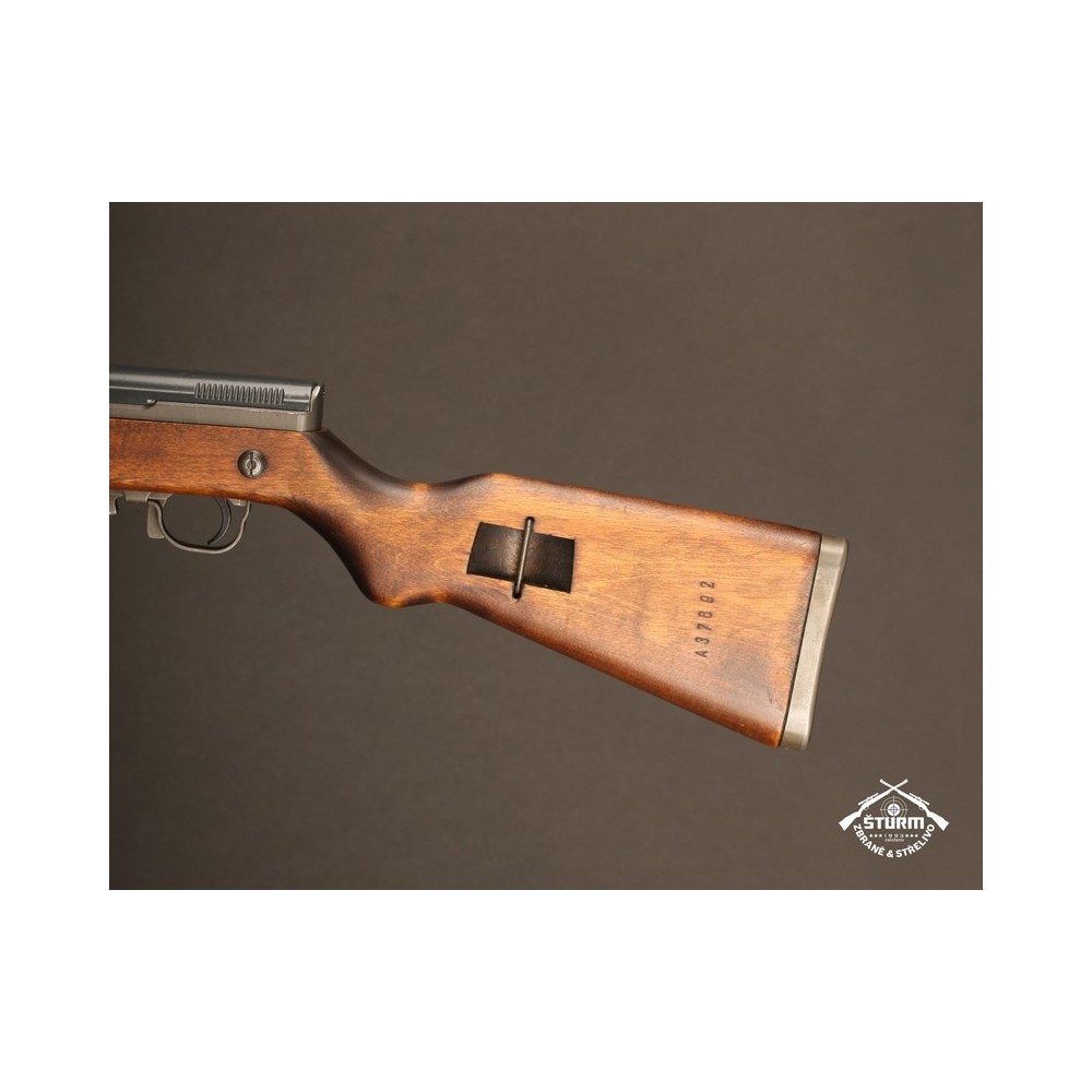 Zbraň ve velice dobrém stavu, kompletně sčíslovaná (i s pažbou), s originálním bodákem a čištěním, uloženým pod botkou v dutině pažby.