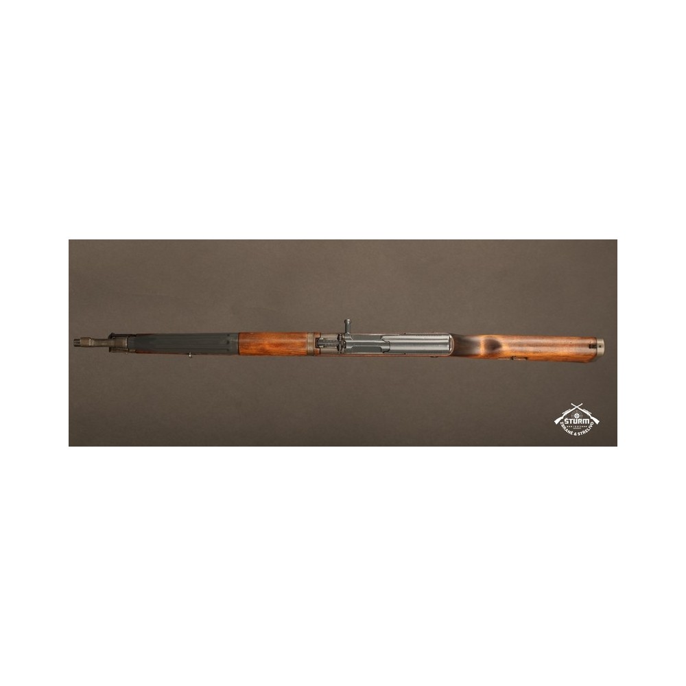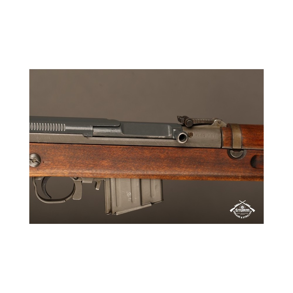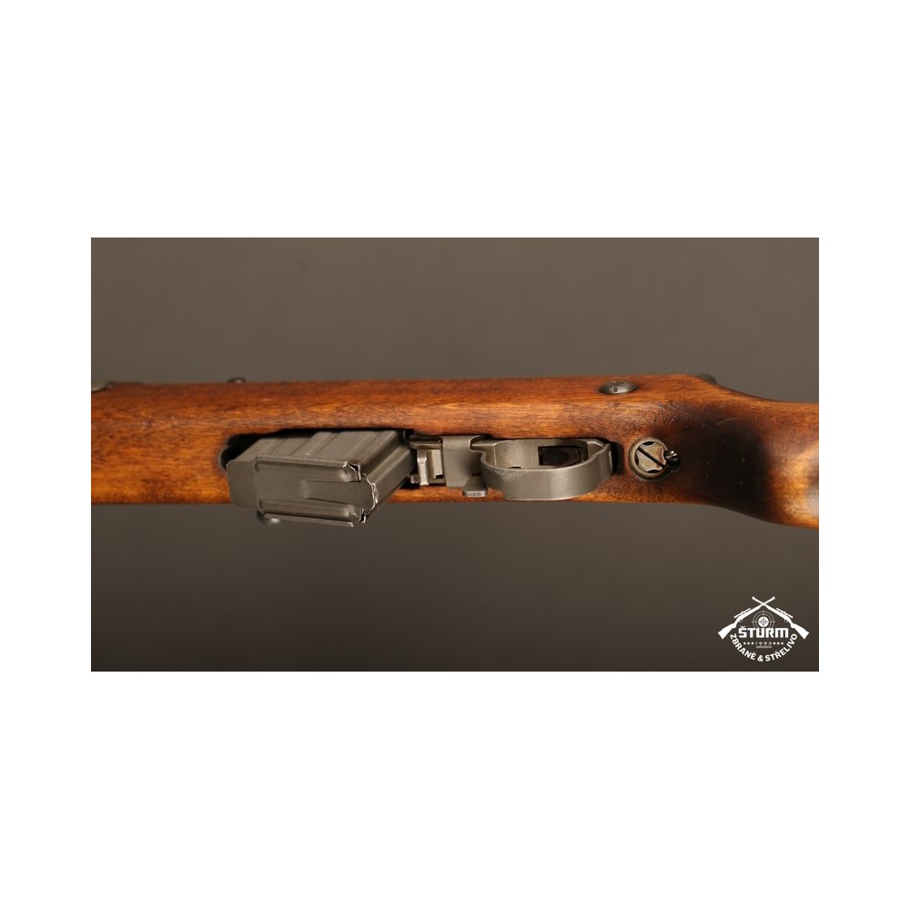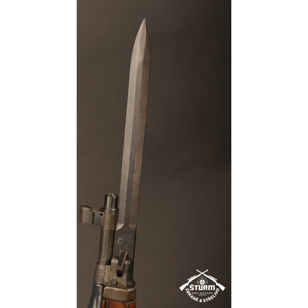 Zbraň ve velice dobrém stavu, kompletně sčíslovaná (i s pažbou), s originálním bodákem a čištěním, uloženým pod botkou v dutině pažby.