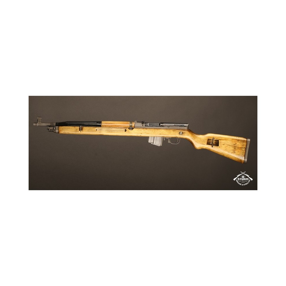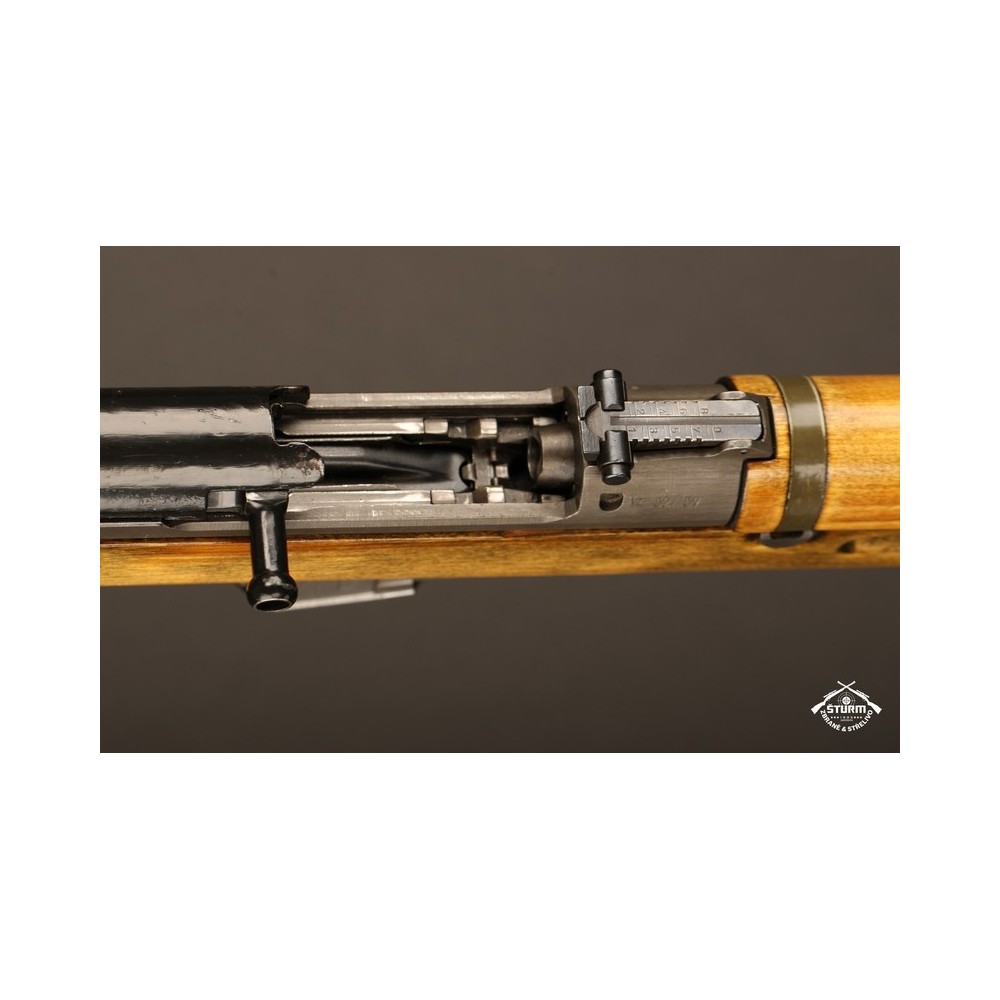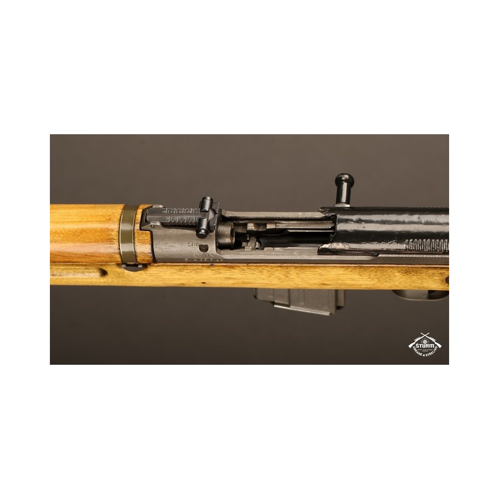 Zbraň ve velice dobrém stavu, s originálním bodákem a čištěním, uloženým pod botkou v dutině pažby.