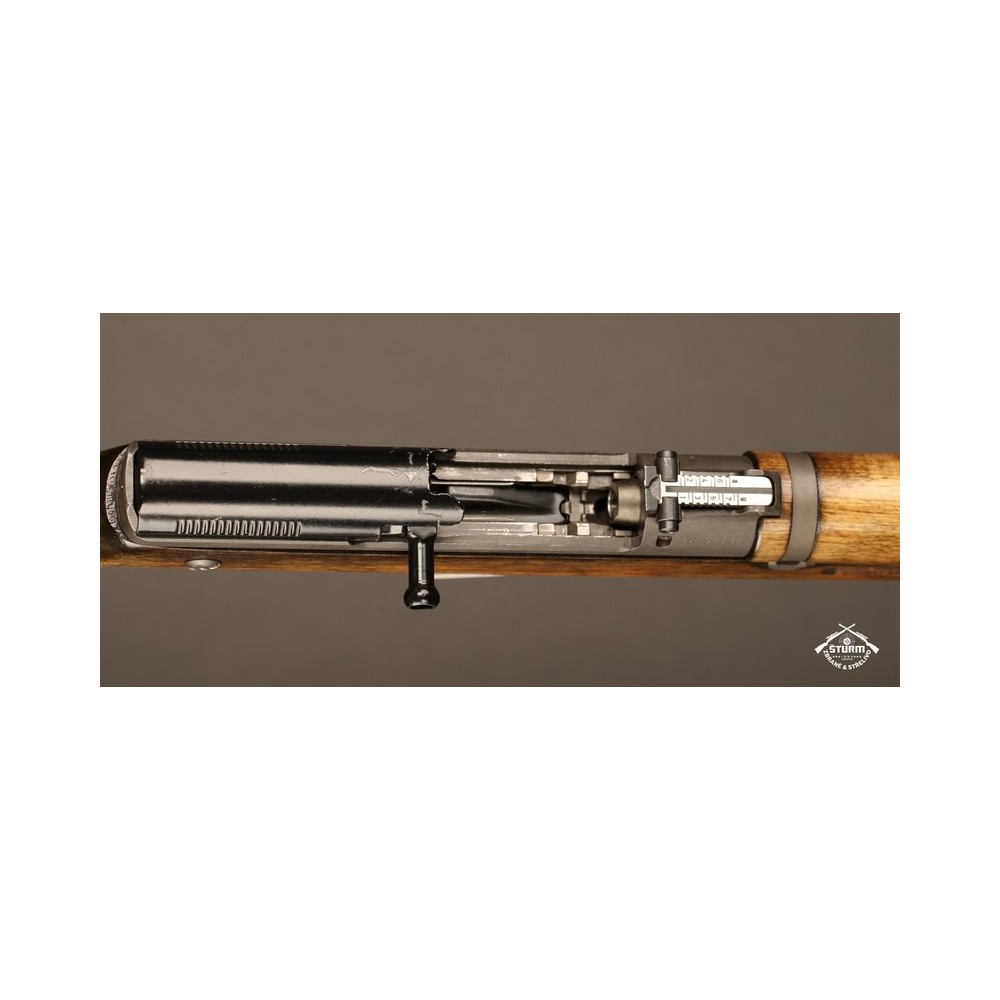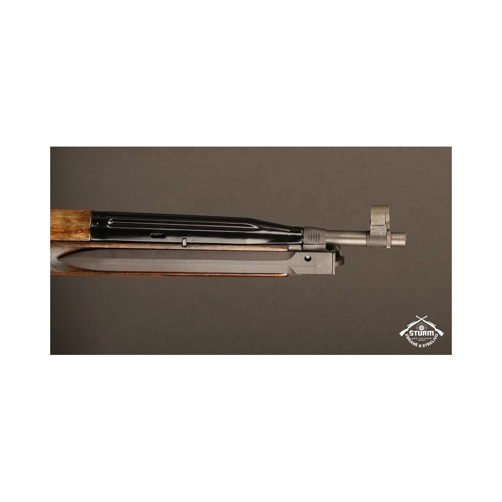 Zbraň ve velice dobrém stavu, s originálním bodákem a čištěním, uloženým pod botkou v dutině pažby.