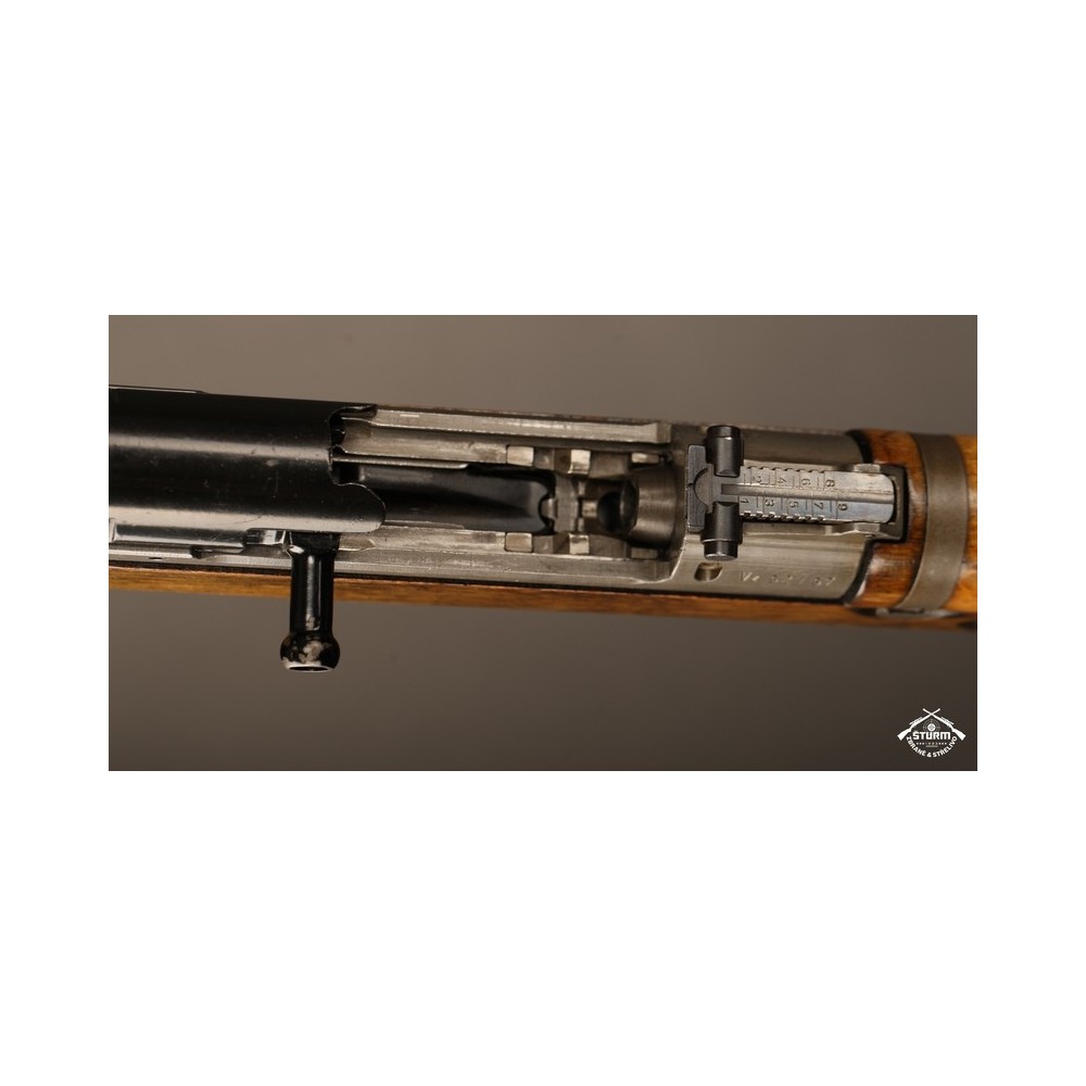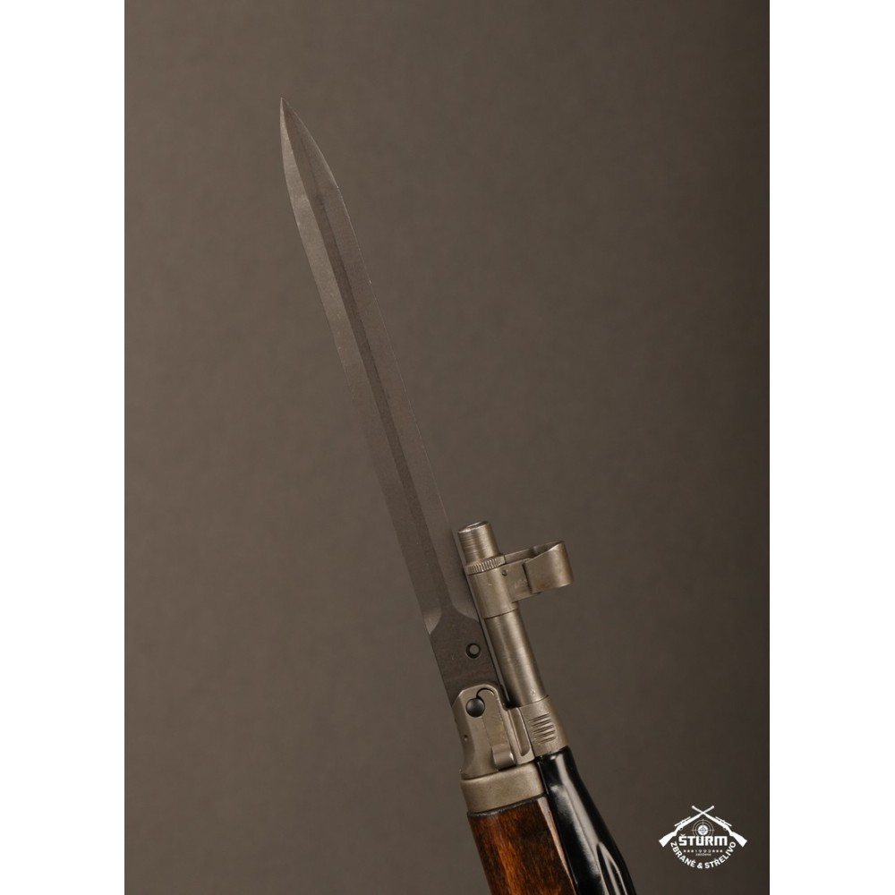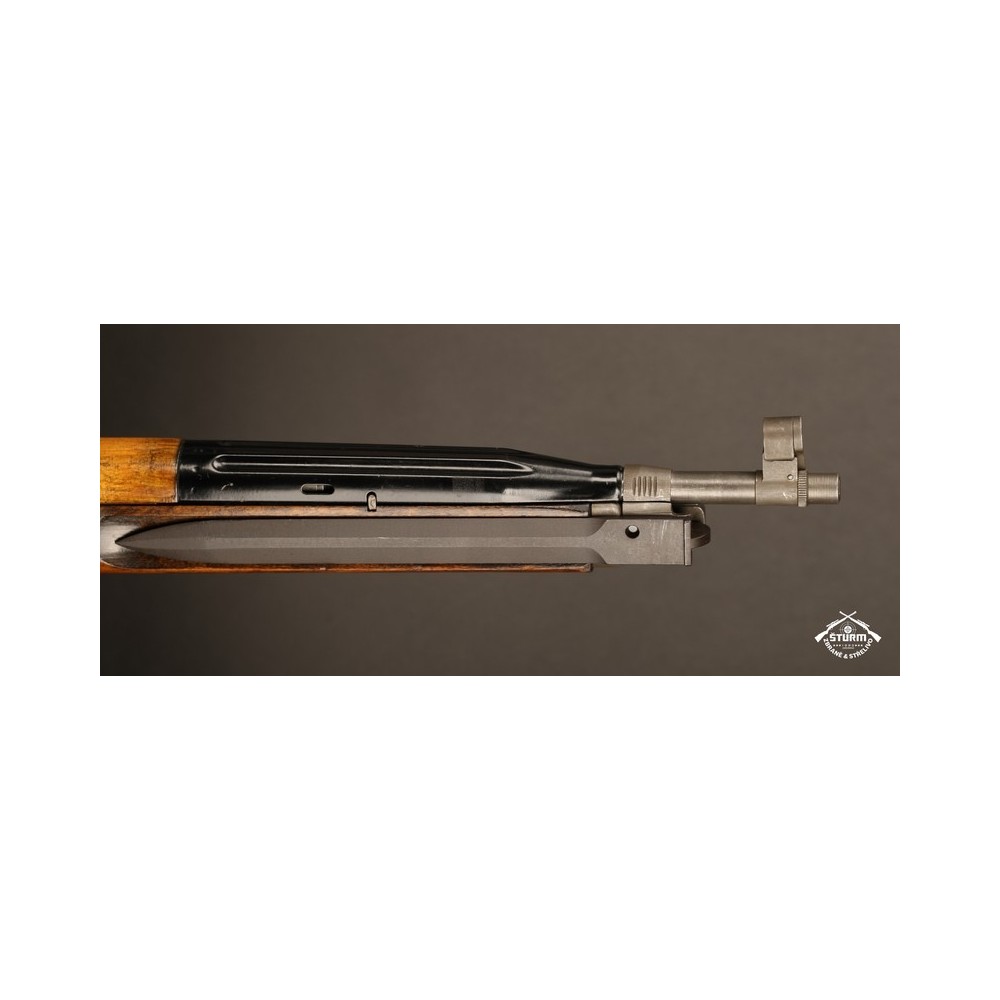 Zbraň ve velice dobrém stavu, kompletně sčíslovaná (i s pažbou), s originálním bodákem a čištěním, uloženým pod botkou v dutině pažby.