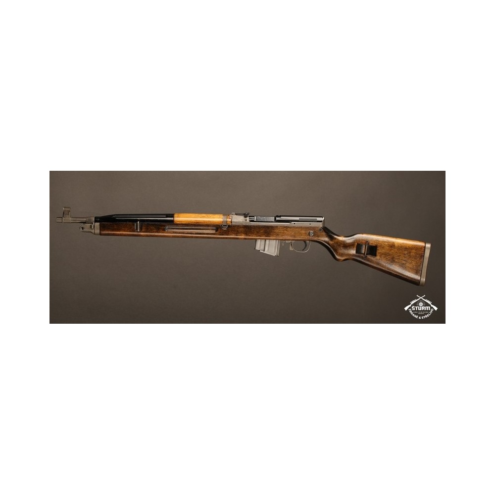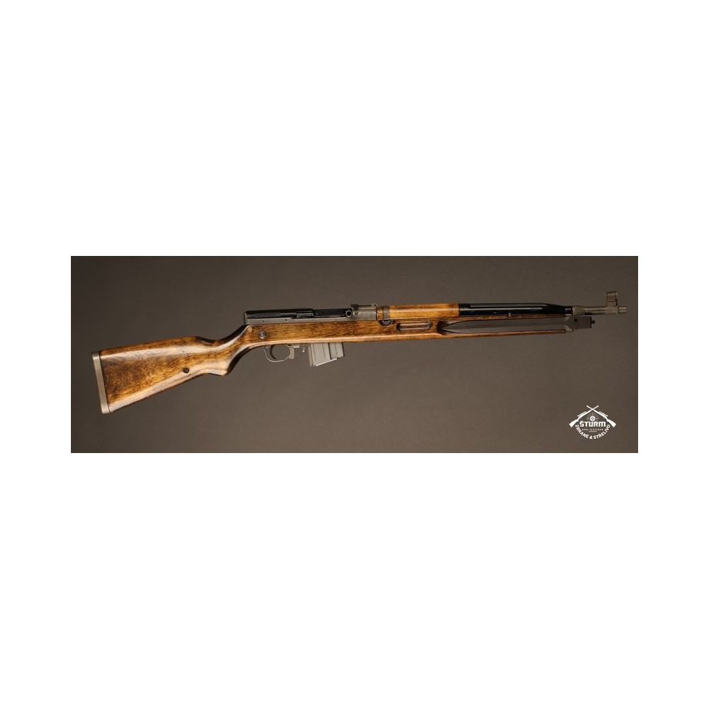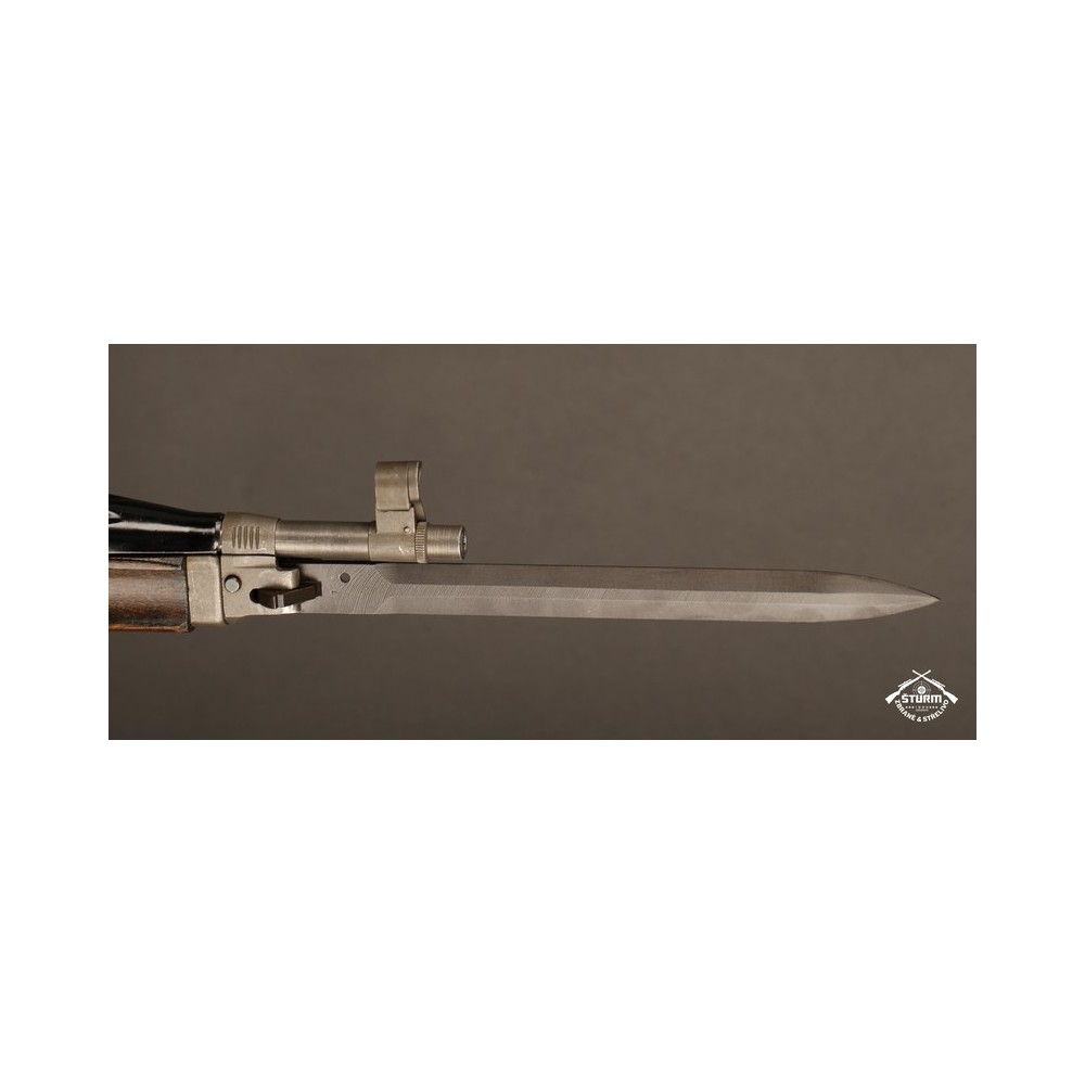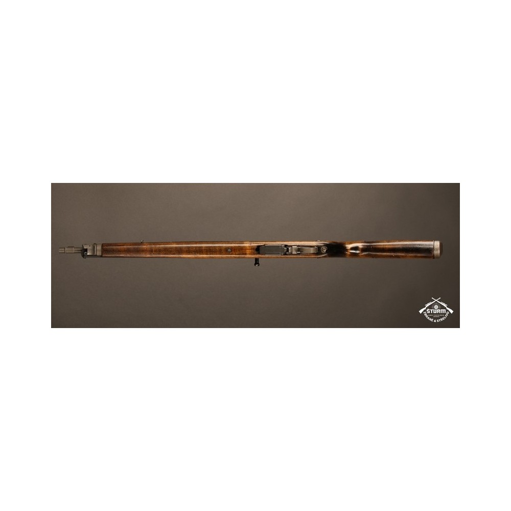 Zbraň ve velice dobrém stavu, kompletně sčíslovaná (i s pažbou), s originálním bodákem a čištěním, uloženým pod botkou v dutině pažby.