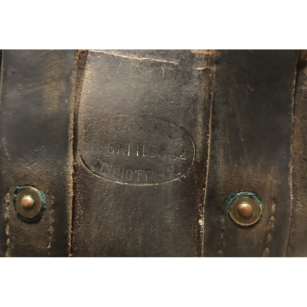 Hezké, zachovalé originální pouzdro pro revolver M.1882 Swiss. Kůže na svůj věk měkká, stehy pevné, značení na zadní straně mezi poutky - ovál s výrobcem.