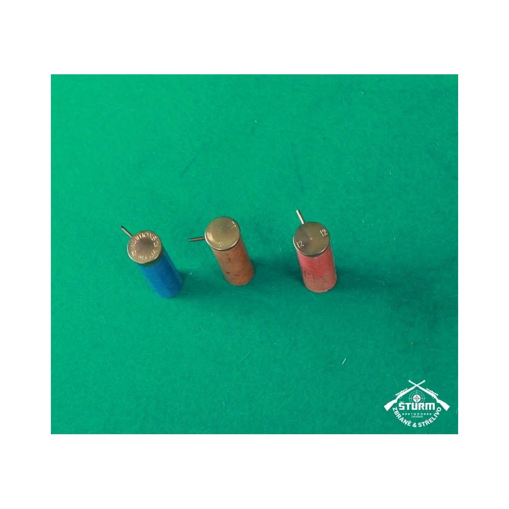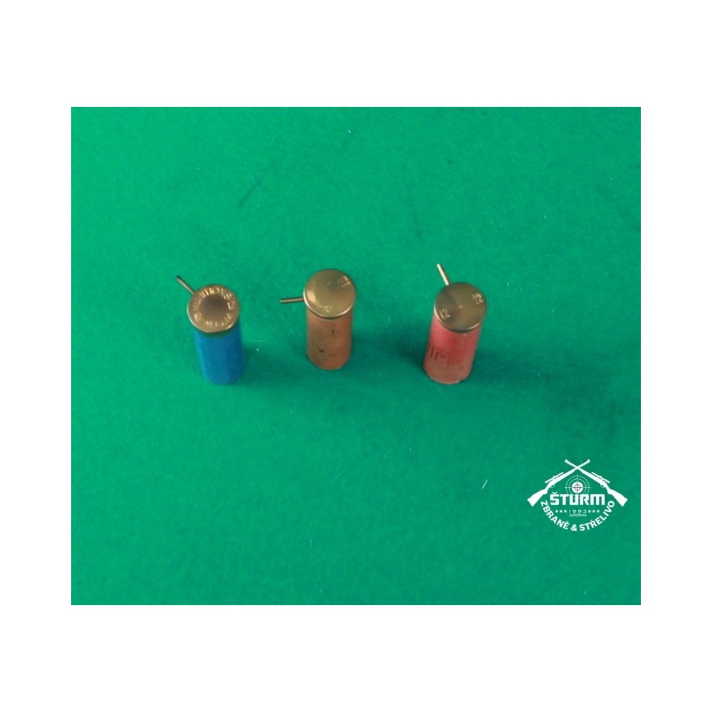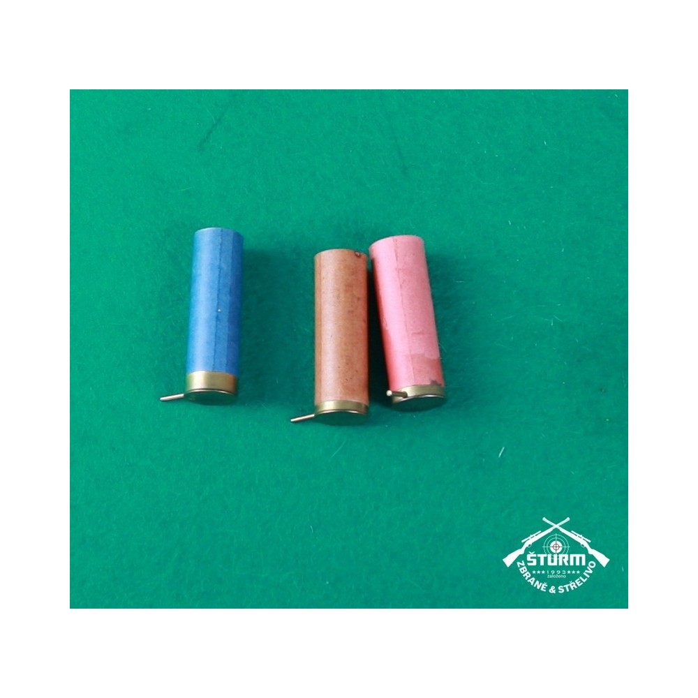 Dutinky ráže 12/65 Lefaucheux, konvolut tří barev od různých výrobců.