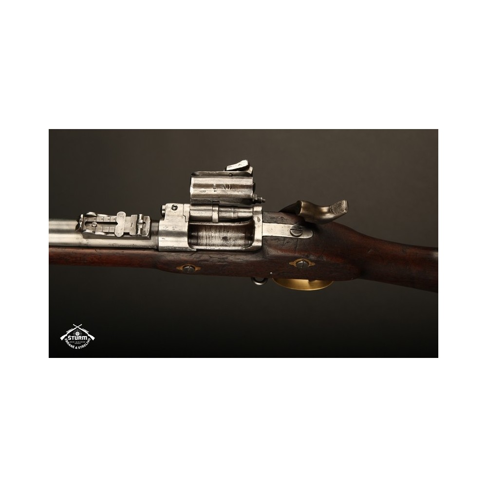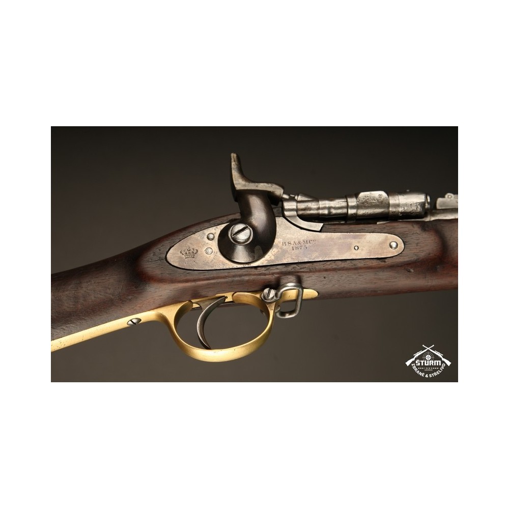 Puška Snider ve skvělém stavu, bez koroze, velmi zachovalá. Byla vyrobena ve firmě BSA&MC v roce 1873. Puška je vybavena hladkou hlavní ráže 20, vývrt je jako zrcadlo. I mechanicky je zbraň v pořádku. Dřevěné části jsou rovněž hezky zachovalé. Na zbrani je spousta originálních značek, všechny jsou velmi zřetelné a čitelné. Puška se vyhnula zásahům kutila a dochovala se ve velmi pěkném, původním stavu. Bohužel chybí vytěrák. Jinak kompletní.