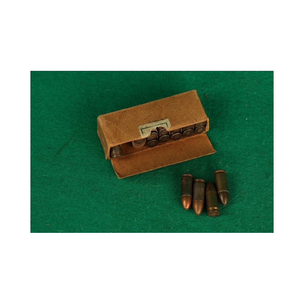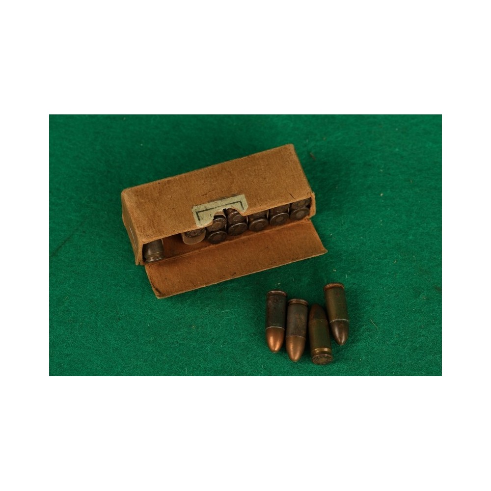 Historické náboje 9mm Luger v originální krabičce. Detaily viz foto.