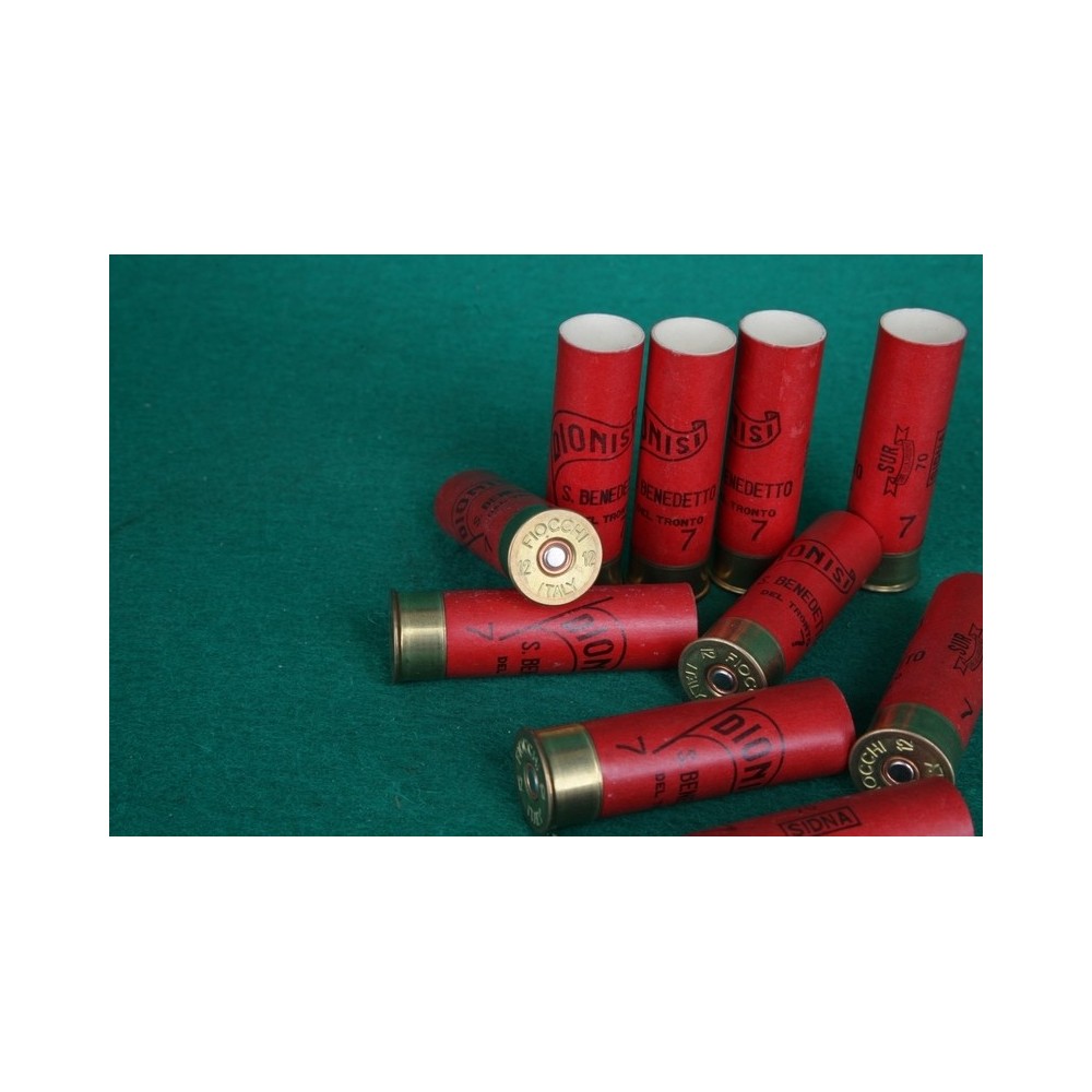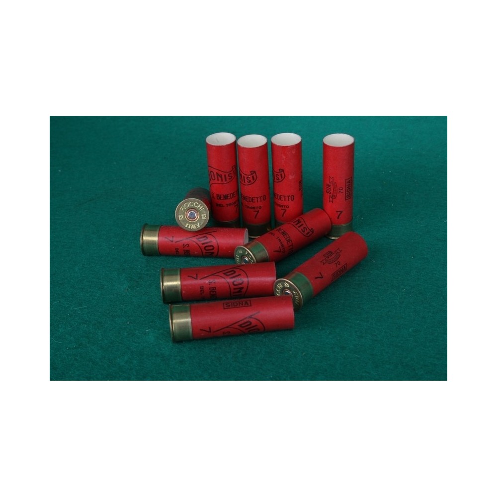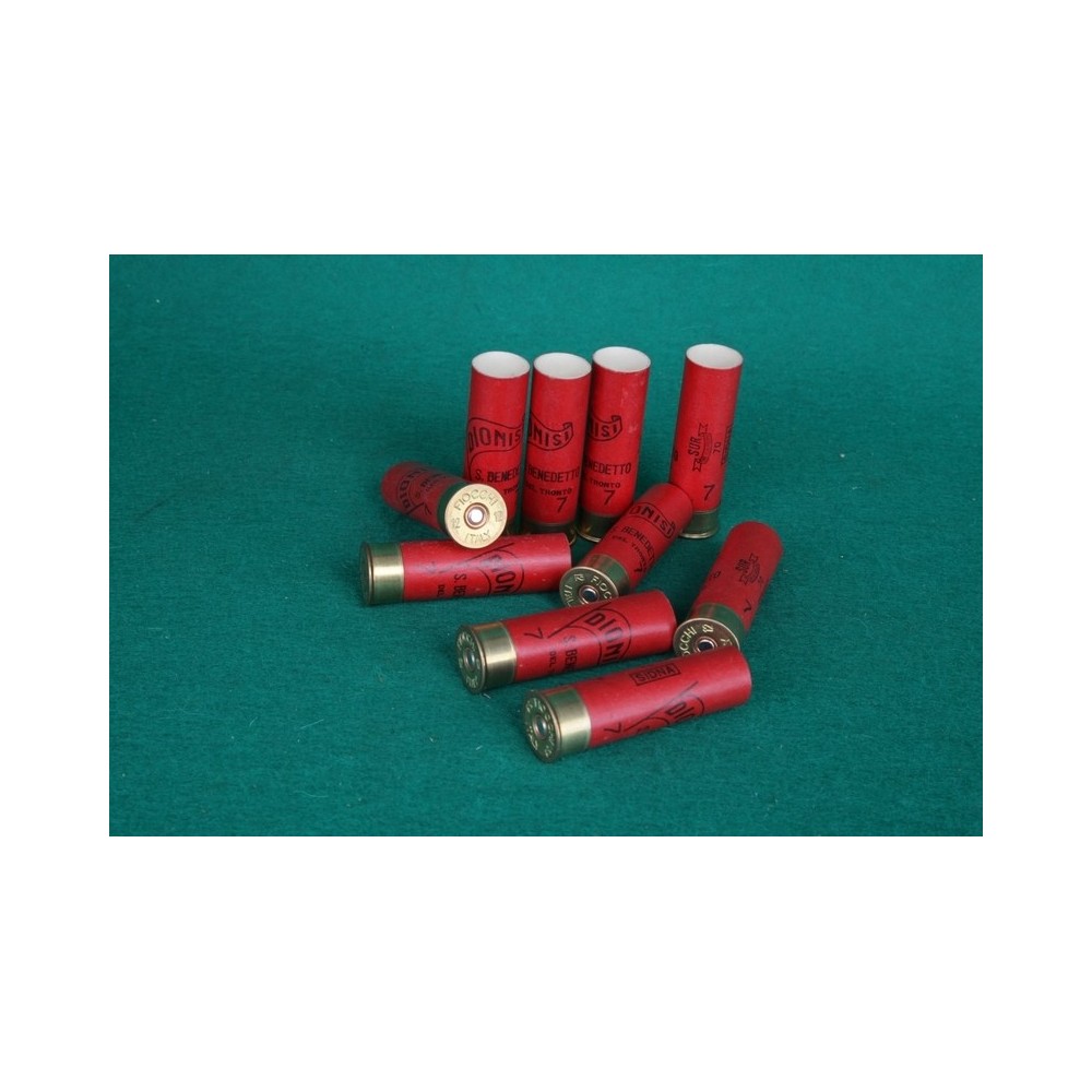 Brokové kartonové dutinky, ráže 12/70. Popis : DIONISI St. Benedetto, rarita.