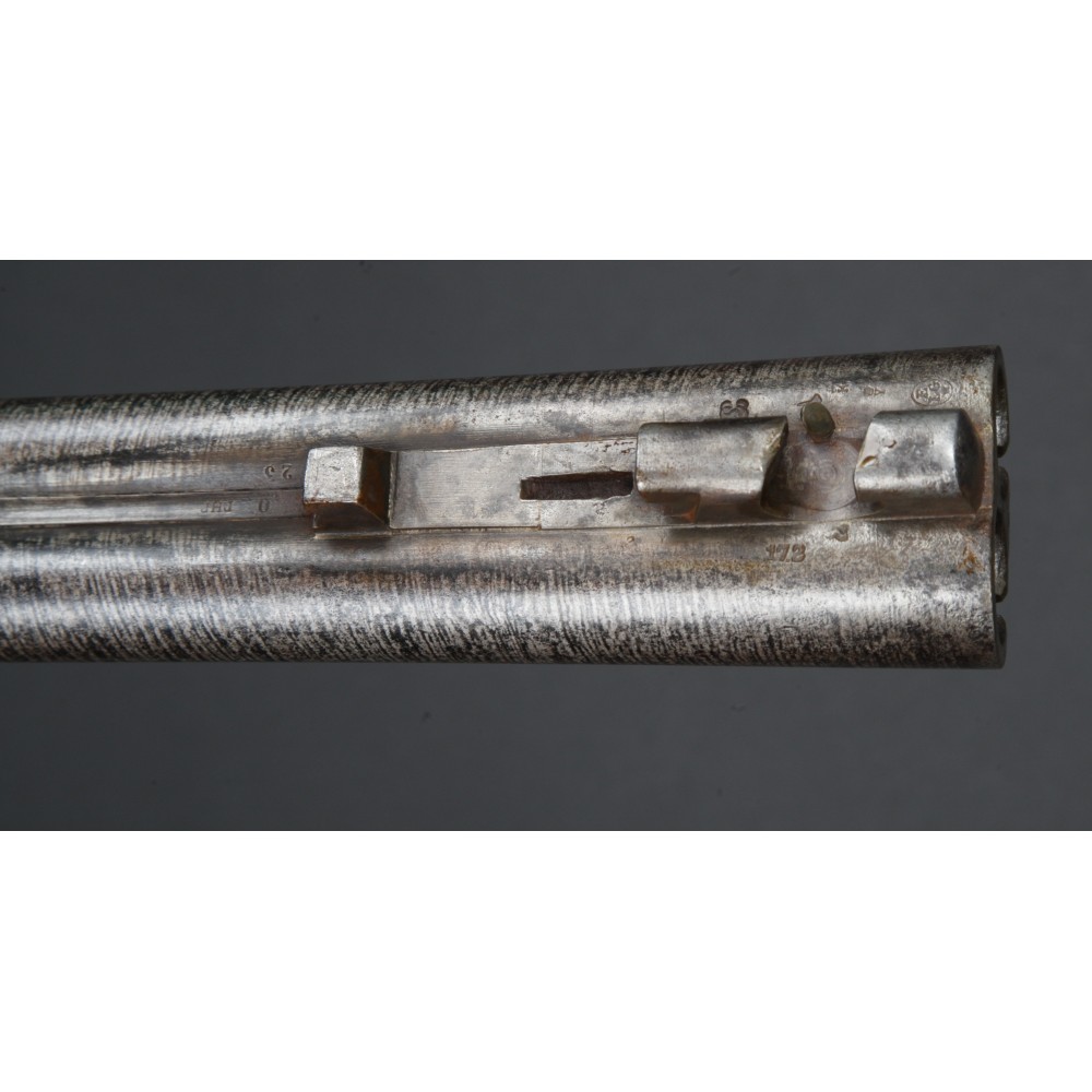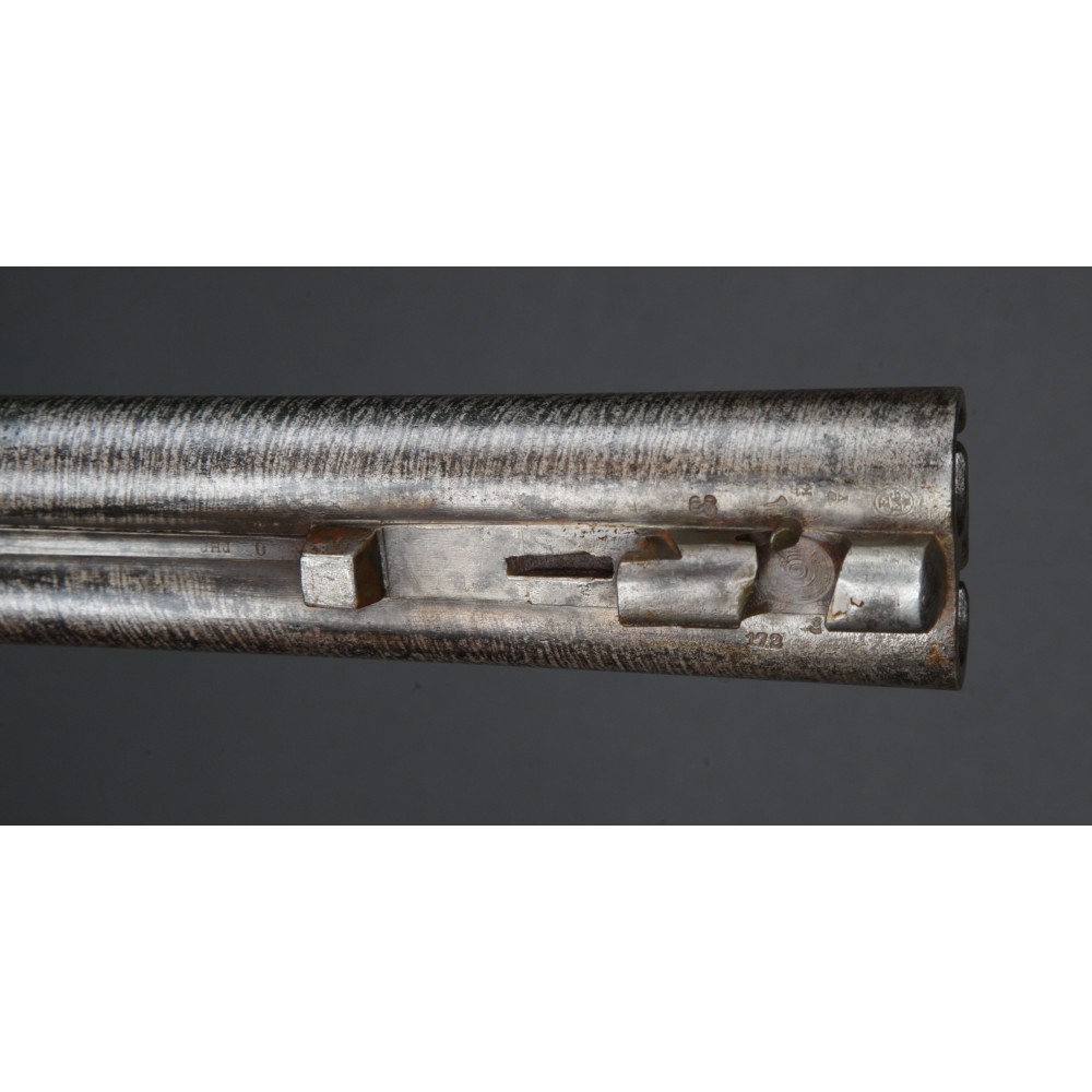 Broková dvojka s damaškovými hlavněmi ve velmi dobrém stavu. Kohouty drží pevně, bicí pružiny silné, náboje odpalují bez problémů.