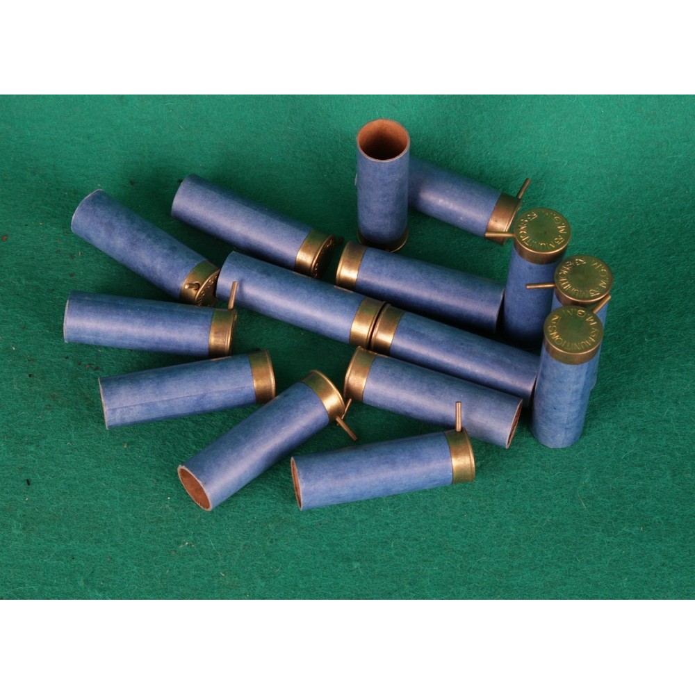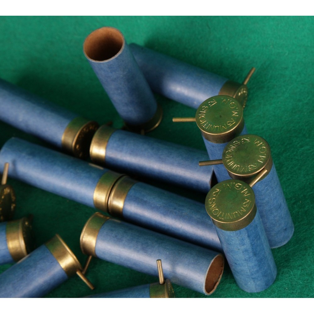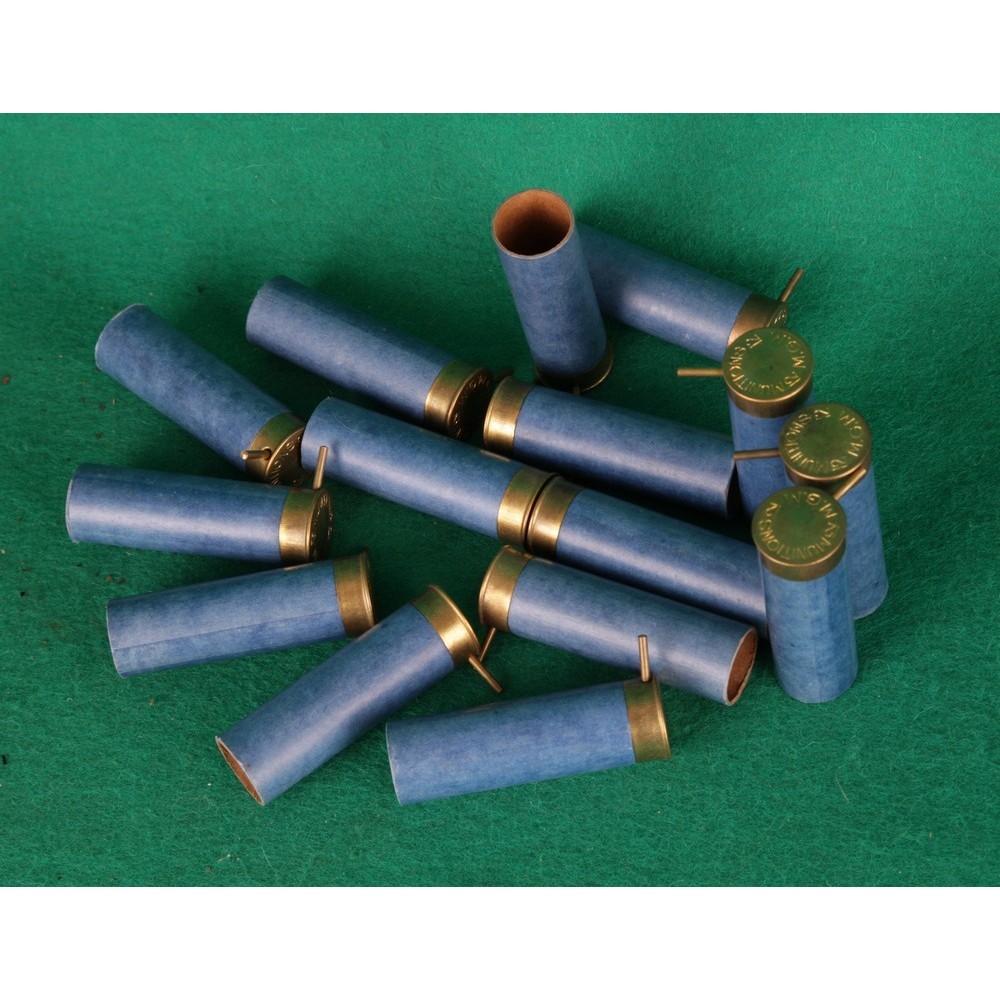 Modré dutinky pro výrobu brokových nábojů pro zbraně systém Lefaucheux, vyrobené firmou MGM, modré barvy.