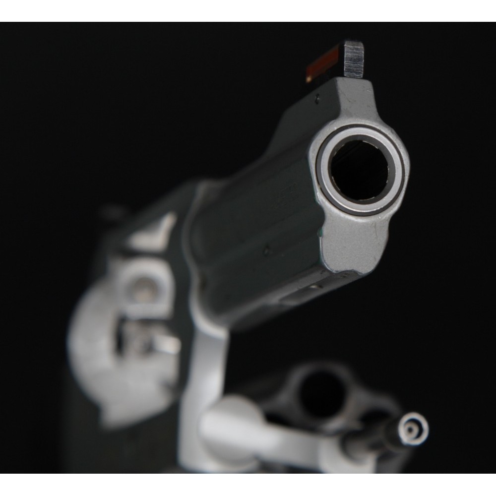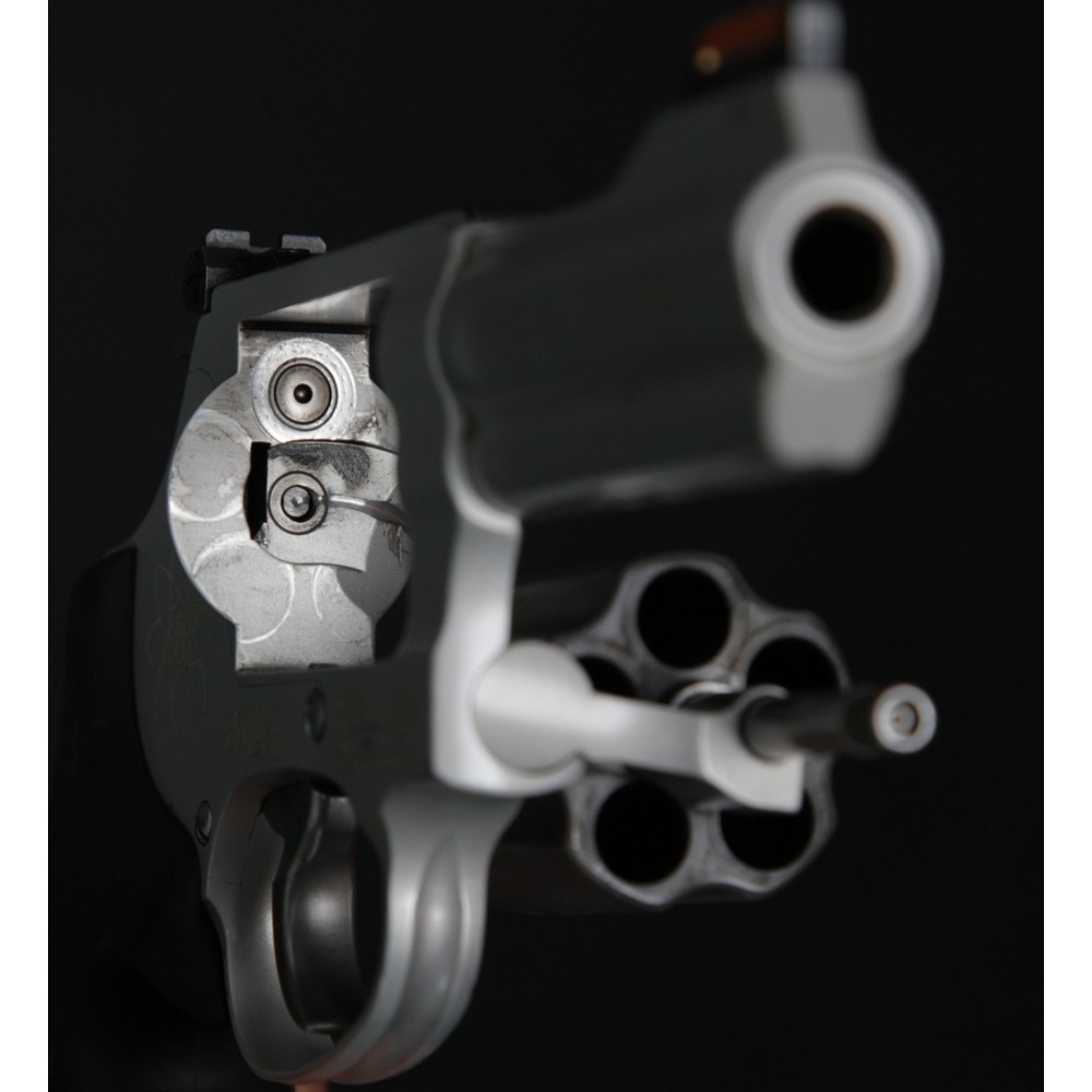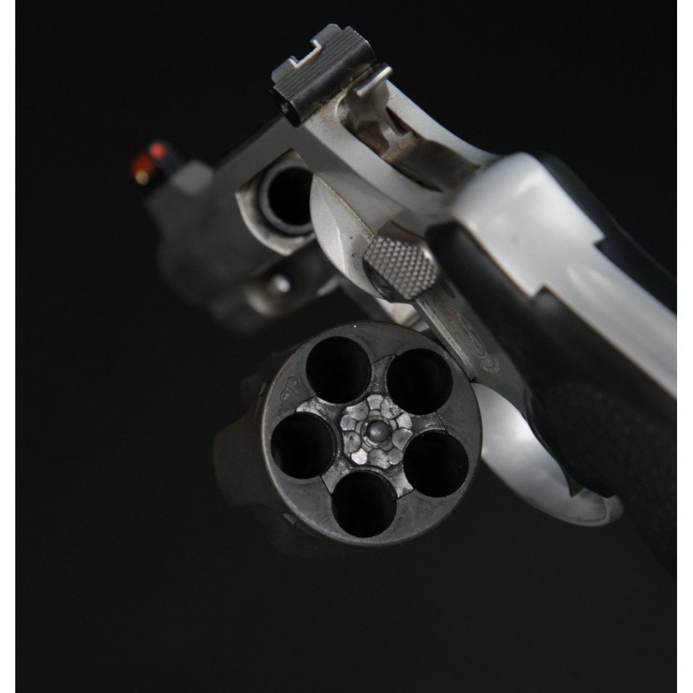 Nábízíme v komisním prodeji revplver Smith & Wesson Model 337 AirLite Ti s komorou .38 Special. a hlavní 2". Velmi lehký hliníkový rám a titanový válec. Titanový válec pojme pět kus§ nábojů ráýe .38 Special. Dodává se s originální odpovídající plastovou a manuálem pro majitele. Revolver je Je ve stavu jako nový, prakticky bez známek opotřebení, pouze drobné stopy po střelbě na válci.Praktické a dobřepadnoucí do ruky jsou anatomické pryžové střenky na pažbě revolveru. Revolver ve stavu 1A včetně příslušenství. S hmotností 390 gramů se jedná o vůbec nejlehčí model revolveru značky Smith & Wesson.