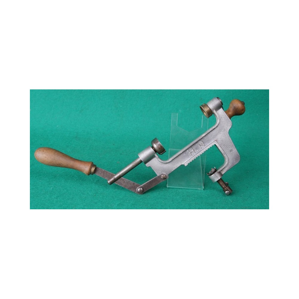 Lehká (hliníková) zakružovačka pro ráži 16. Zakružovačka zvládá bez problémů máboje se středovým zápalem, ale i náboje s kolíčkovou iniciací (Lefaucheux)