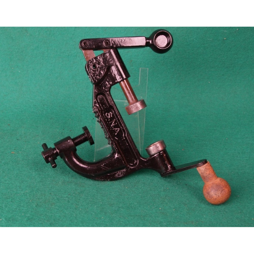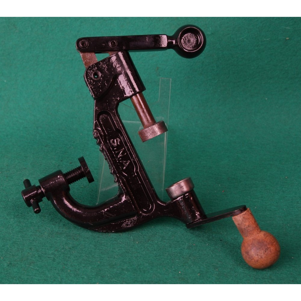 Masivní velká zakružovačka, vyrobená firmou S.N.A, umí uzavírat brokové náboje ráže 16 se středovým, nebo Lefaucheux zápalem.