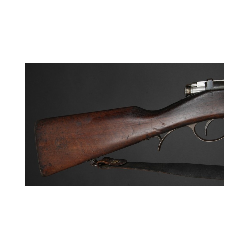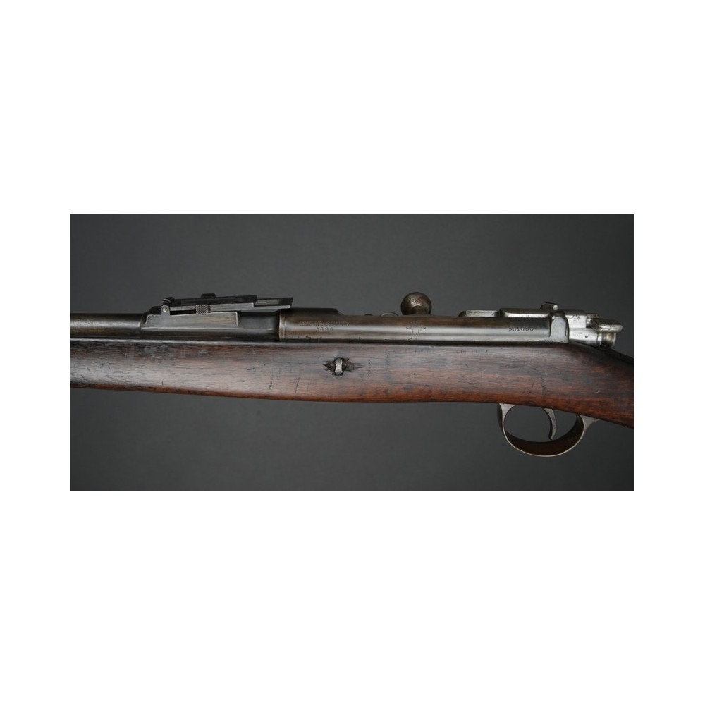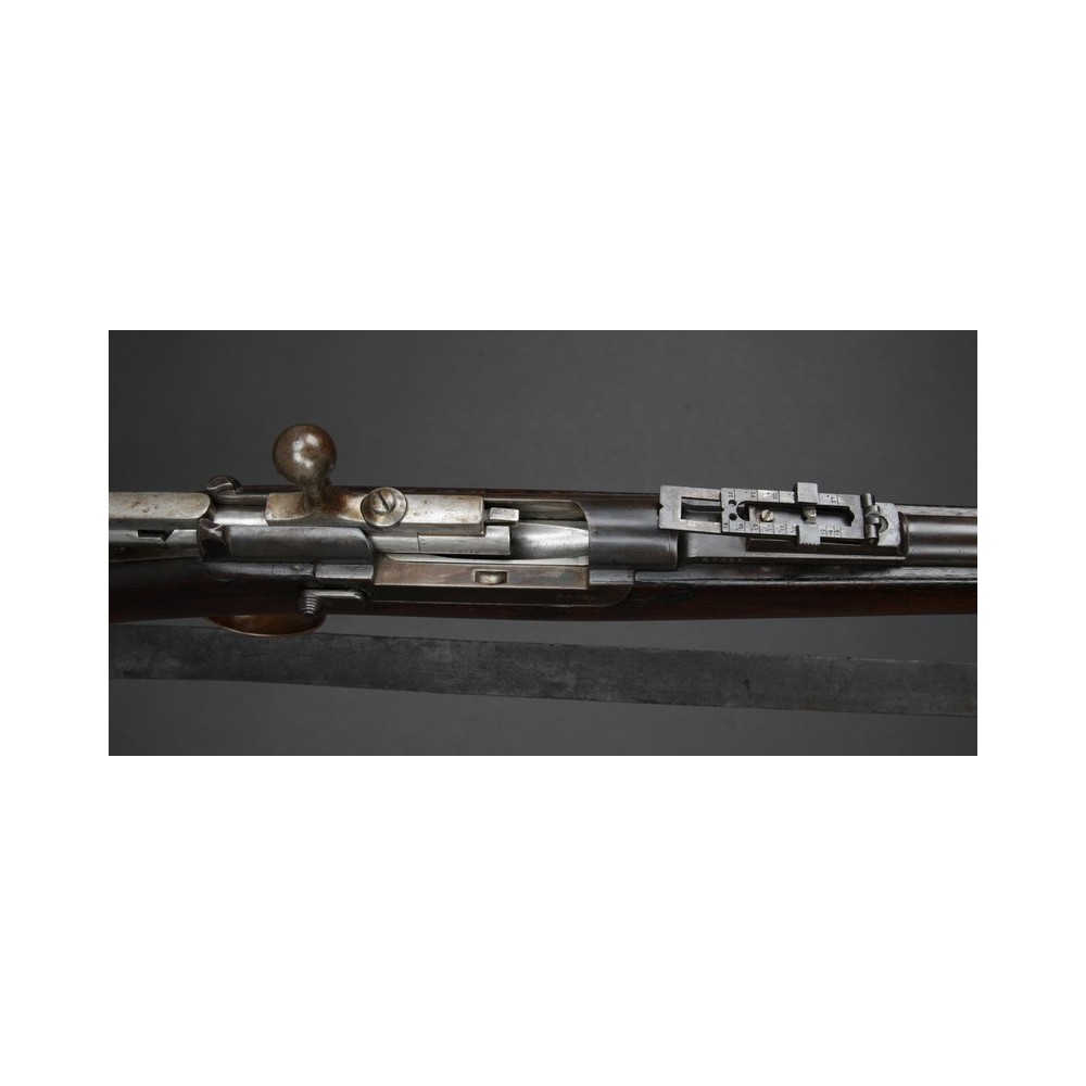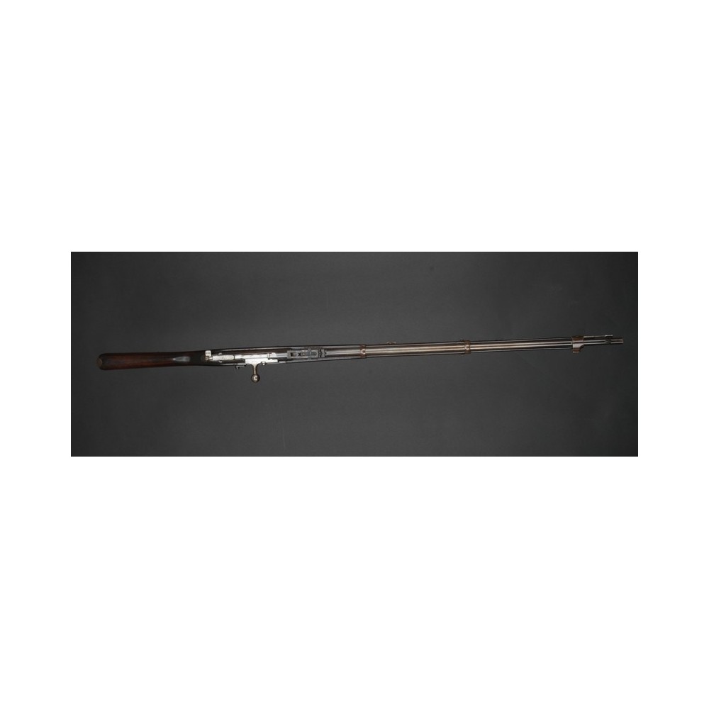 Velmi hezky zachovalý Kropatschek M.1886, plně funkční. Kovové části s historickou patinou, pažba velmi pěkná s výrazným původním značením. Závěr má bohužel jiné číslo.