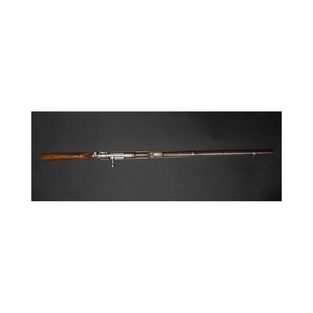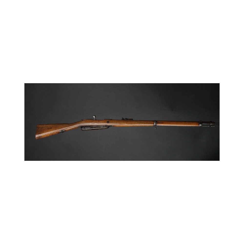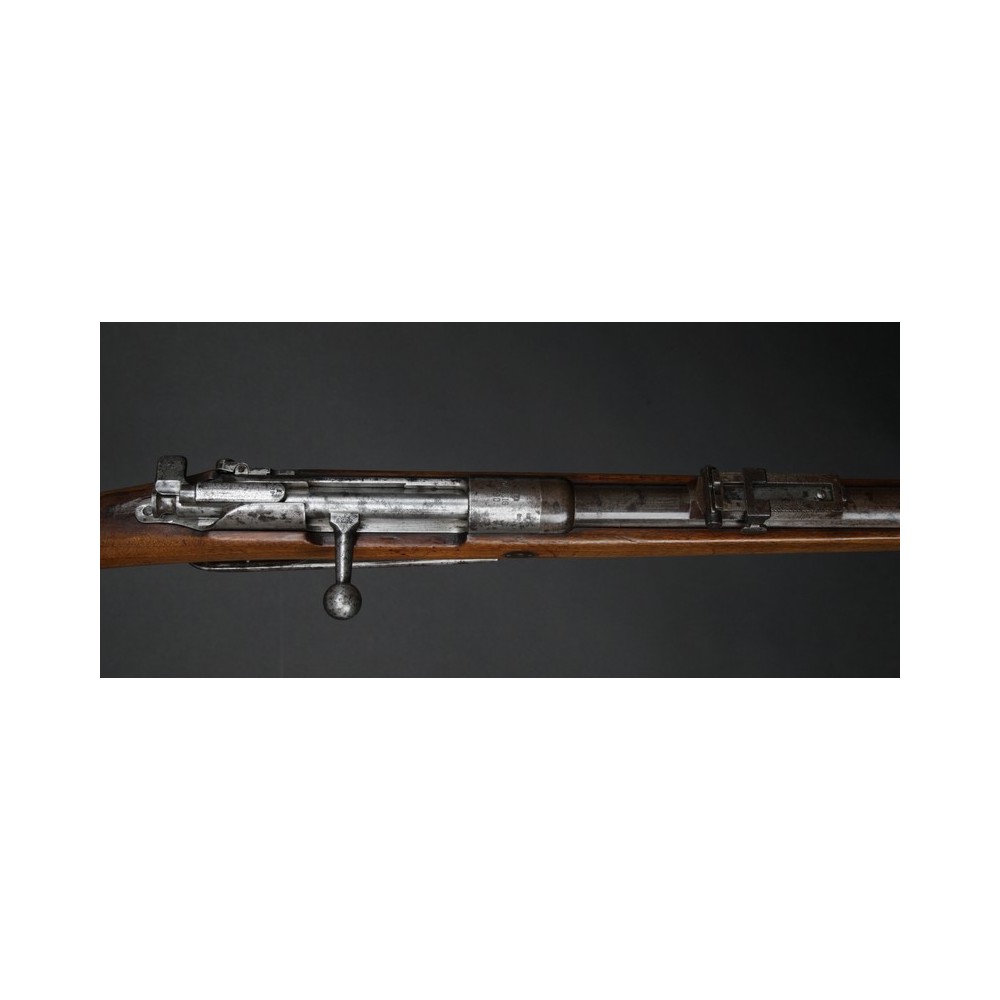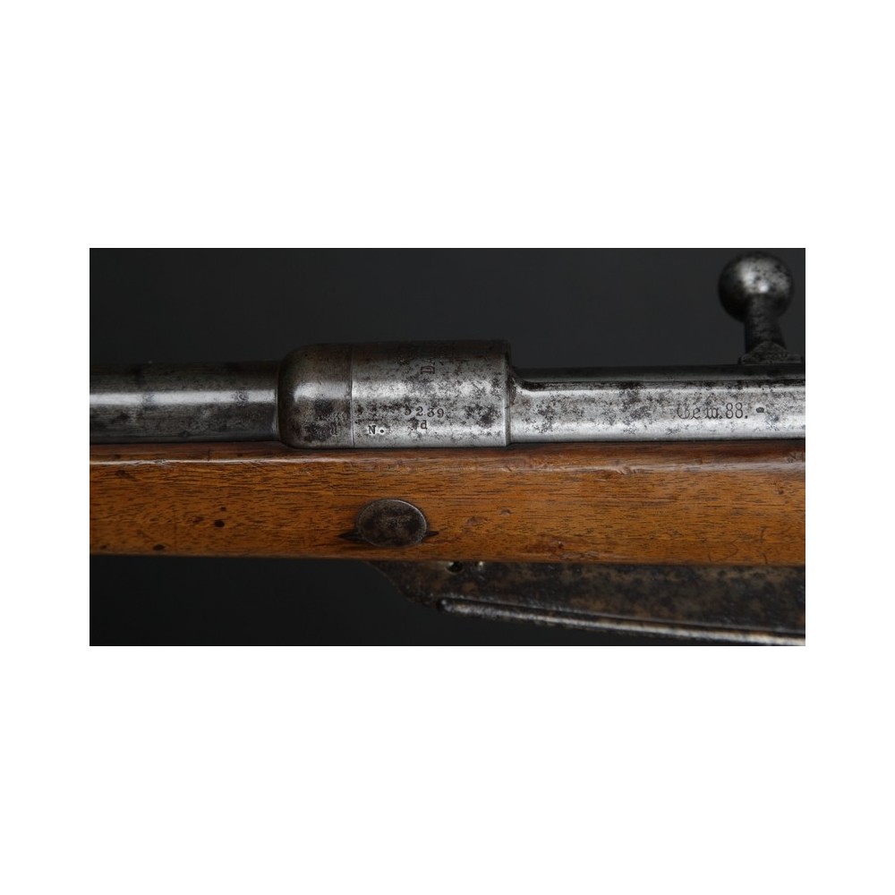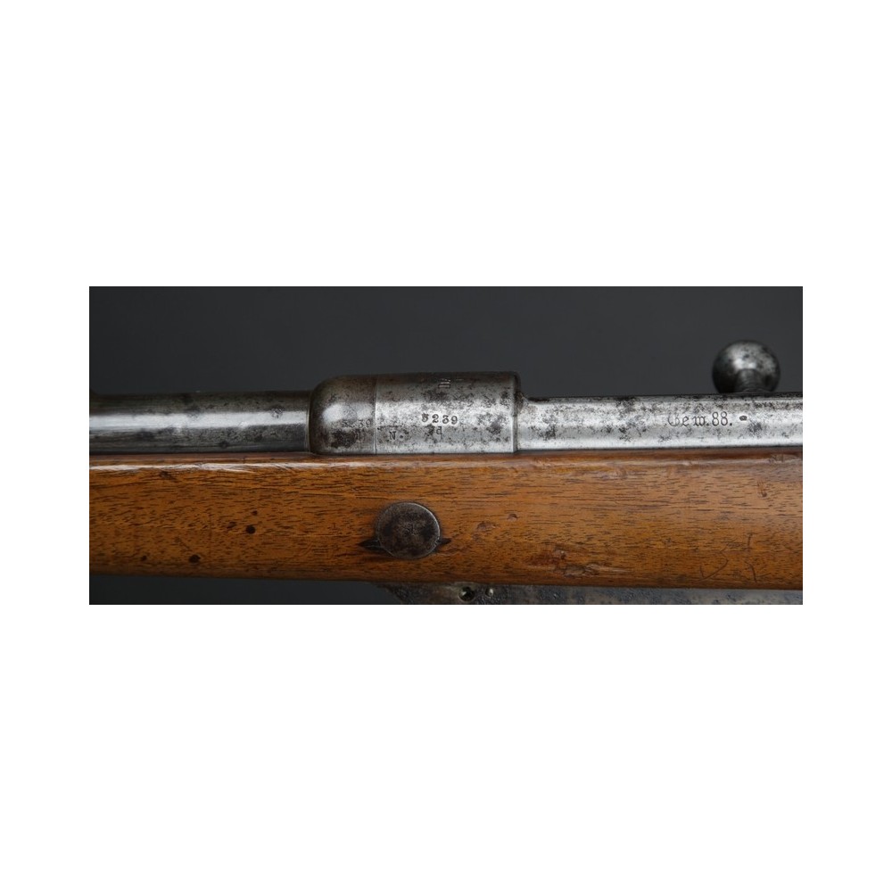 Opakovací puška Gewehr M.1888, vyrobený v roce 1890 ve zbrojovce v tehdejším Danzigu (Gdaňsku). Puška má původní ráži 8x57I, je v původním stavu bez zásahu kutila a co je nejvzácnější - je do posledního šroubku kompletně sčíslovaná, což je u tohoto modelu velmi vzácná rarita. Pažba rovněž v původním stavu s původním značením, velmi hezká a zachovalá. Kovové části jsou kryté původním brynýren a ty, které mají být bílé jsou bílé s patinou (závěr, pouzdro závěru).