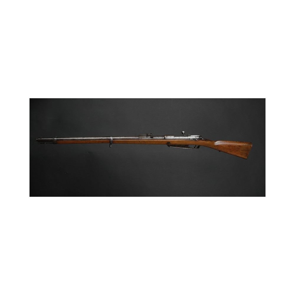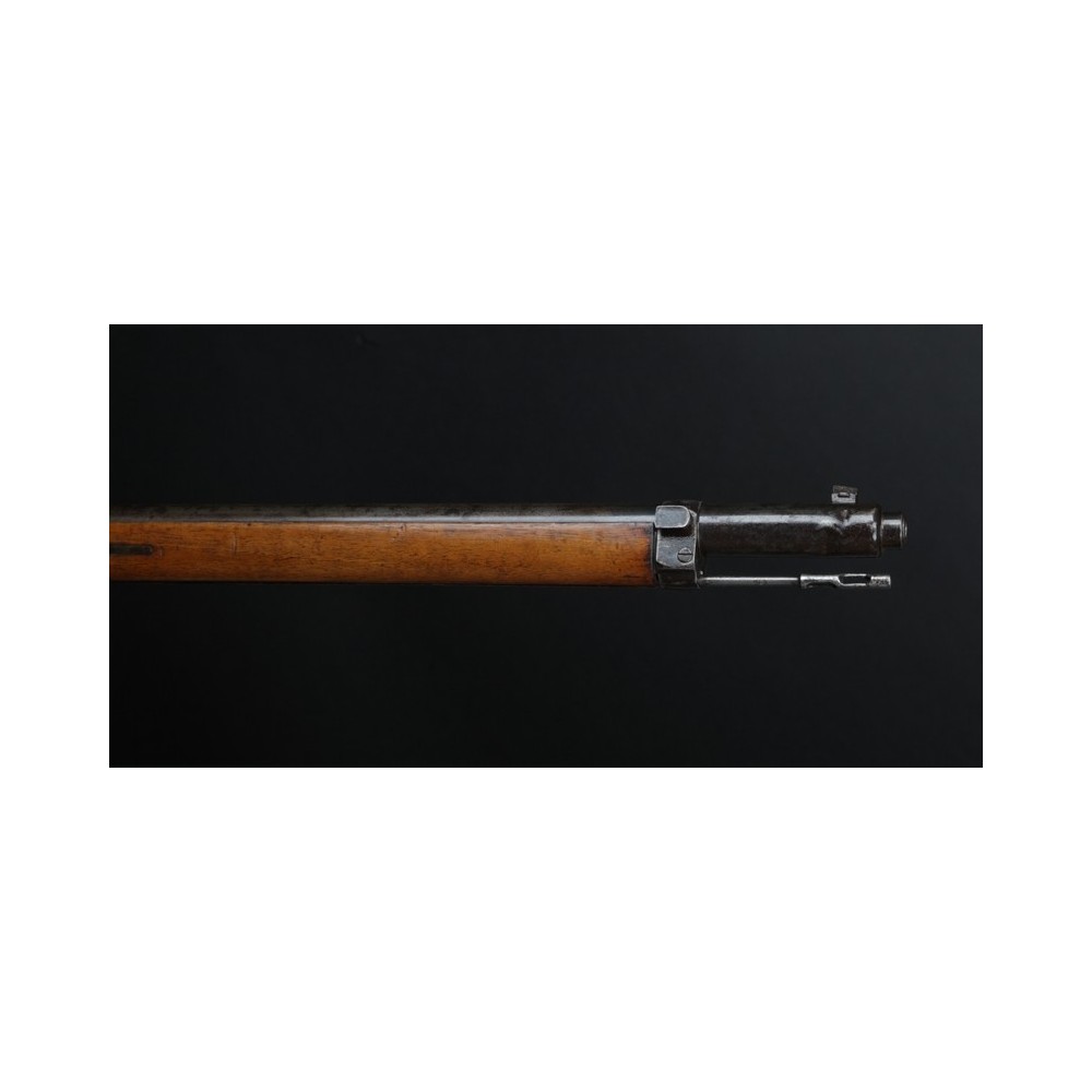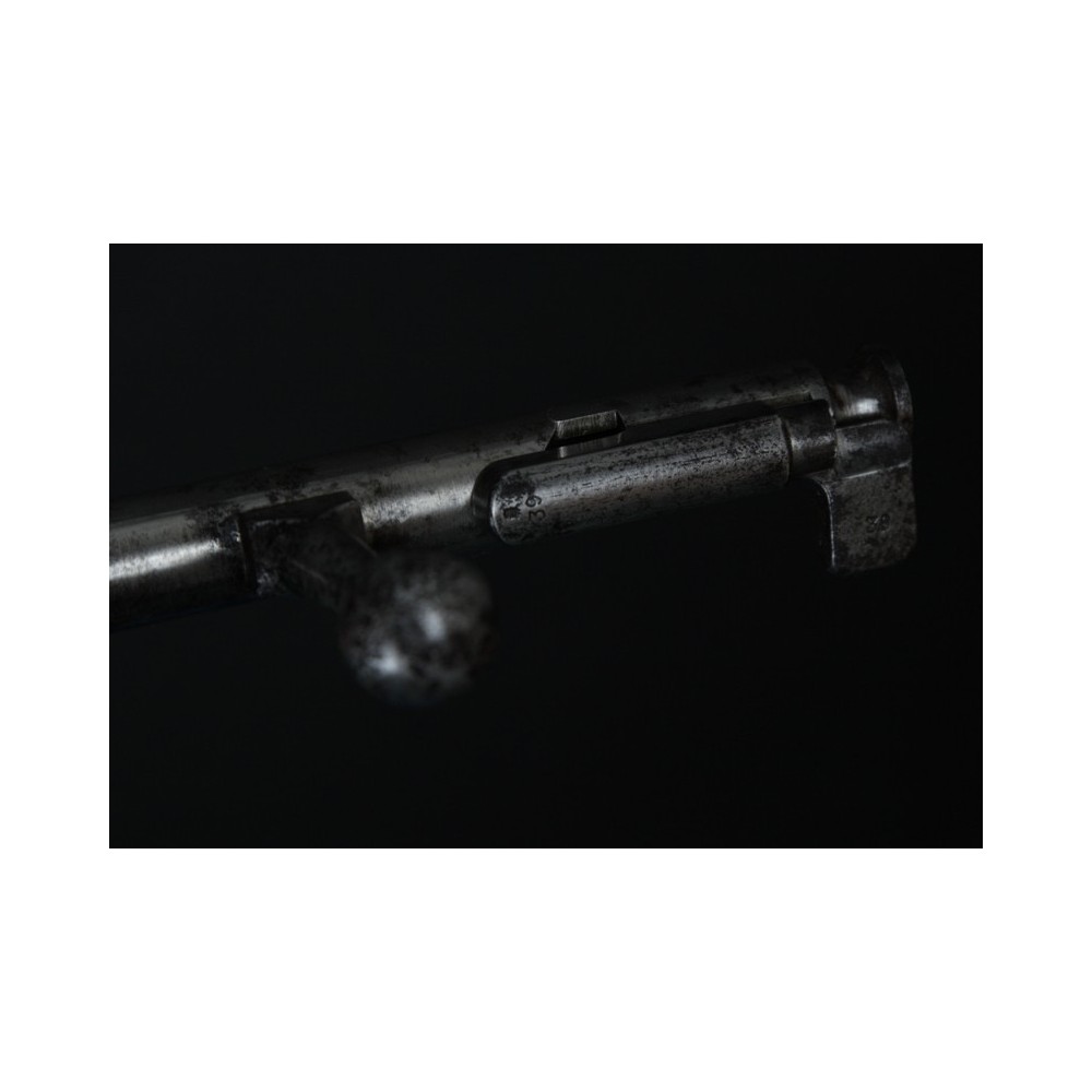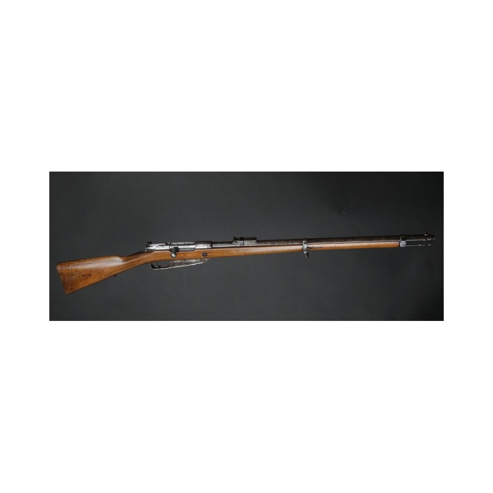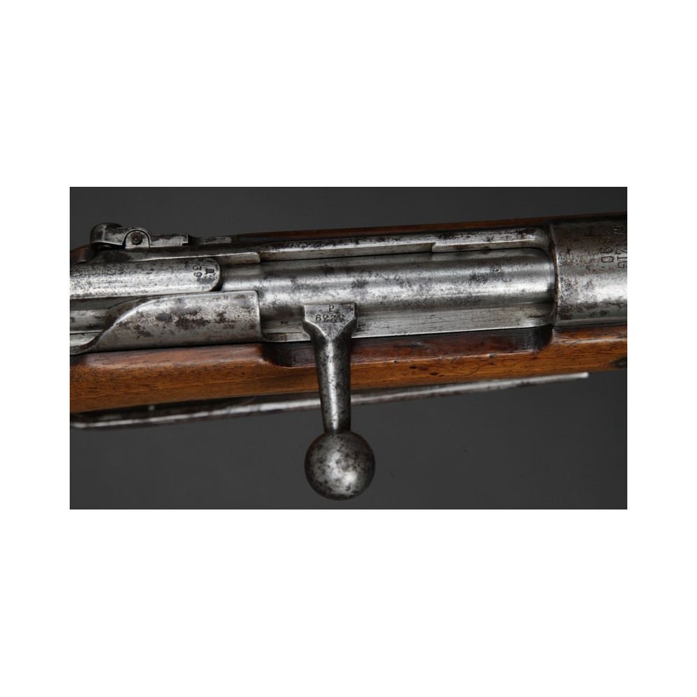 Opakovací puška Gewehr M.1888, vyrobený v roce 1890 ve zbrojovce v tehdejším Danzigu (Gdaňsku). Puška má původní ráži 8x57I, je v původním stavu bez zásahu kutila a co je nejvzácnější - je do posledního šroubku kompletně sčíslovaná, což je u tohoto modelu velmi vzácná rarita. Pažba rovněž v původním stavu s původním značením, velmi hezká a zachovalá. Kovové části jsou kryté původním brynýren a ty, které mají být bílé jsou bílé s patinou (závěr, pouzdro závěru).