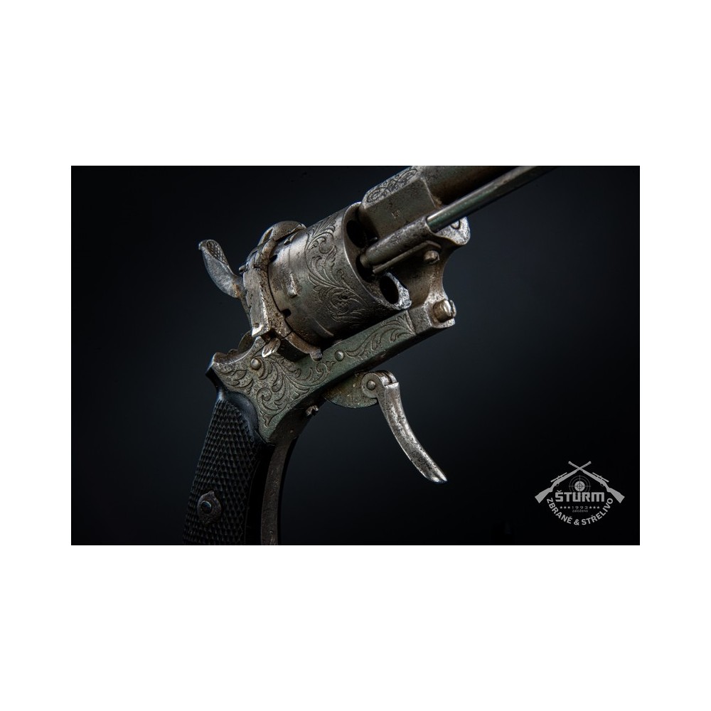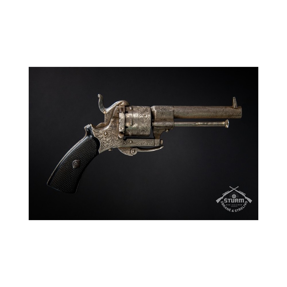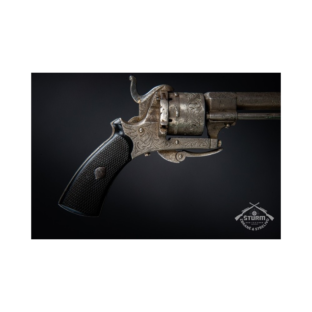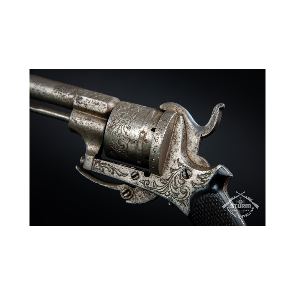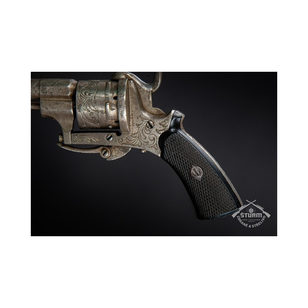 Revolver Lefaucheux, ráže 7mm, výrobní číslo 20. Zachovalý stav, funkční, s hezkou rytinou.
