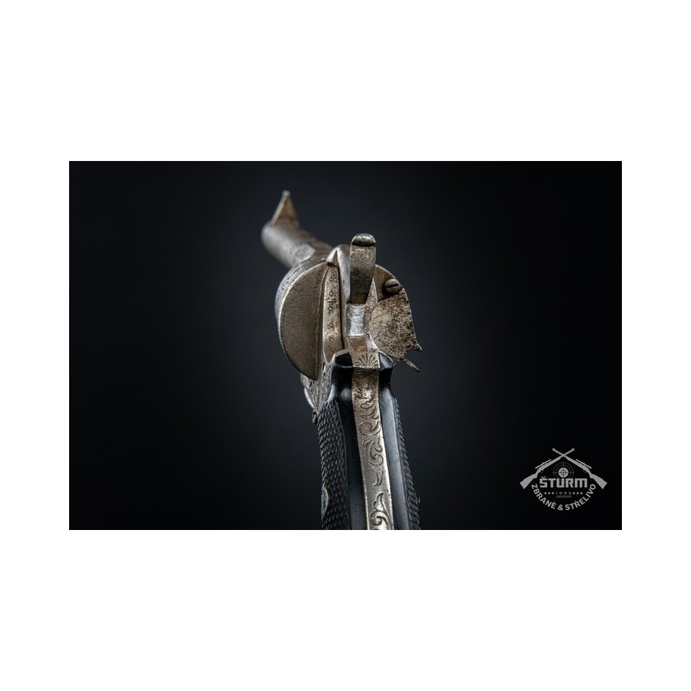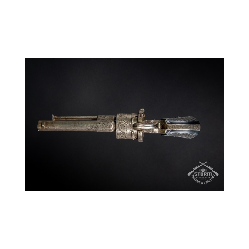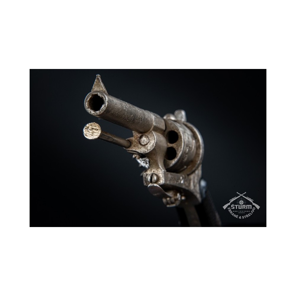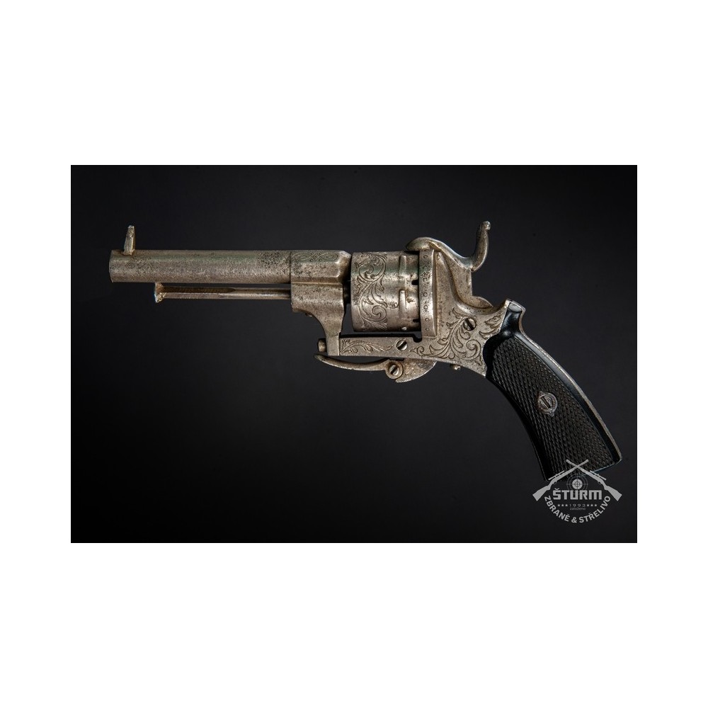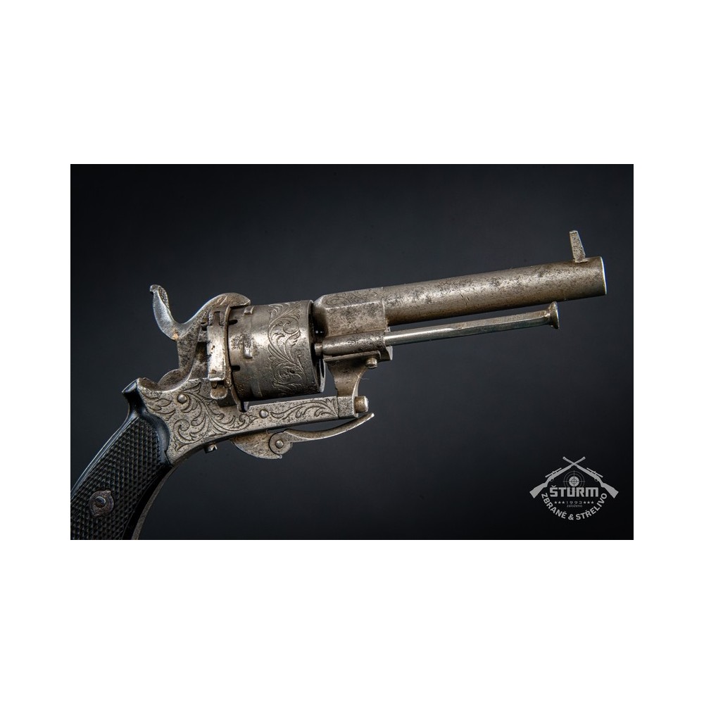Revolver Lefaucheux, ráže 7mm, výrobní číslo 20. Zachovalý stav, funkční, s hezkou rytinou.